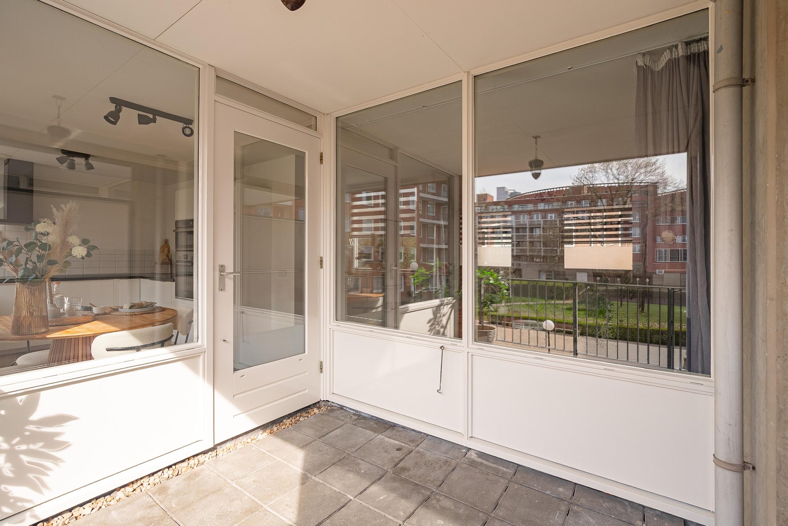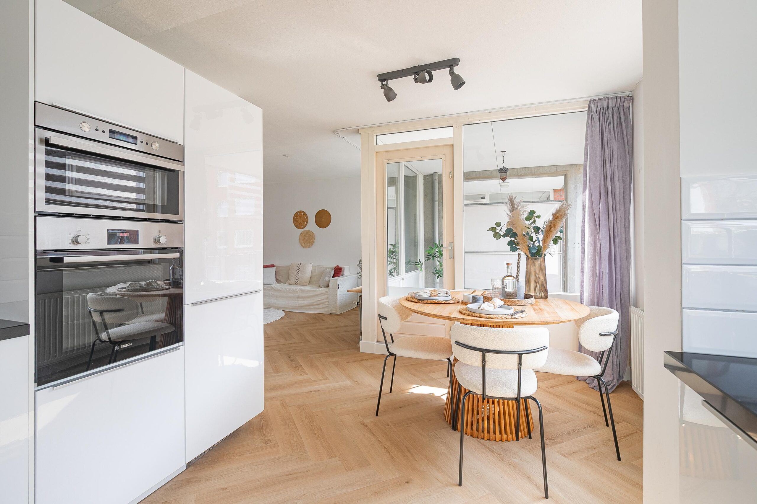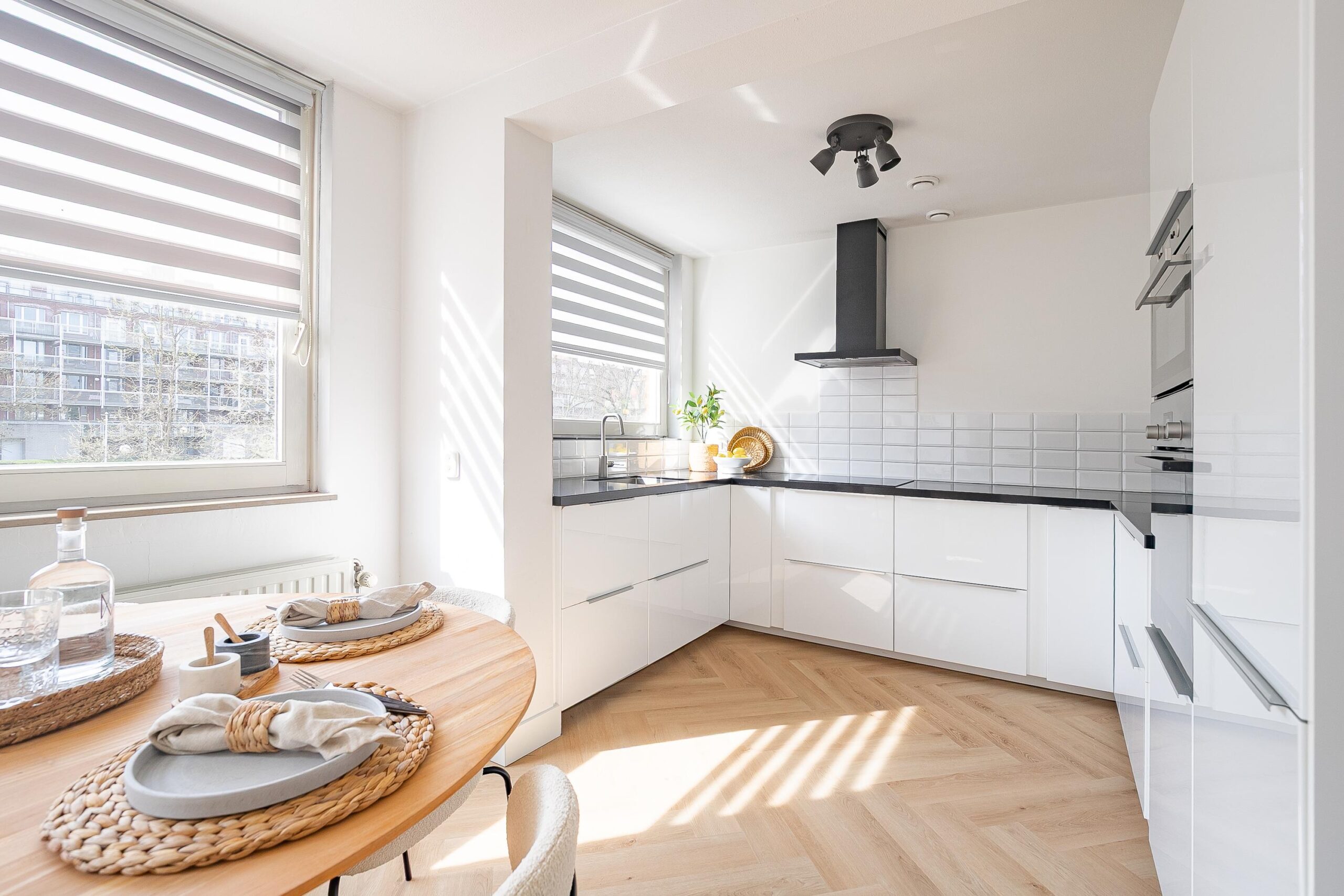 Hal met toegang tot de ruime en lichte woonkamer (ca. 22 m²) met halfopen keuken (ca. 15 m²). De keuken is compleet uitgevoerd en voorzien van diverse inbouwapparatuur, waaronder een koel-/vriescombinatie, inductiekookplaat met oven, afzuigkap en vaatwasser. Vanuit de keuken stapt u zo het balkon op (ca. 6 m²), waar u geniet van een vrij en groen uitzicht op de volledig omsloten binnentuin met parkachtige uitstraling. Een heerlijke plek voor een kop koffie in de ochtend of een drankje na het werk. Het appartement beschikt verder over twee goed bemeten slaapkamers (ca. 12 m² en 10 m²). De badkamer is netjes en voorzien van een inloopdouche en een modern badkamermeubel met spiegel. Daarnaast is er een separaat toilet met fonteintje en een praktische bergruimte met aansluiting voor de wasmachine.