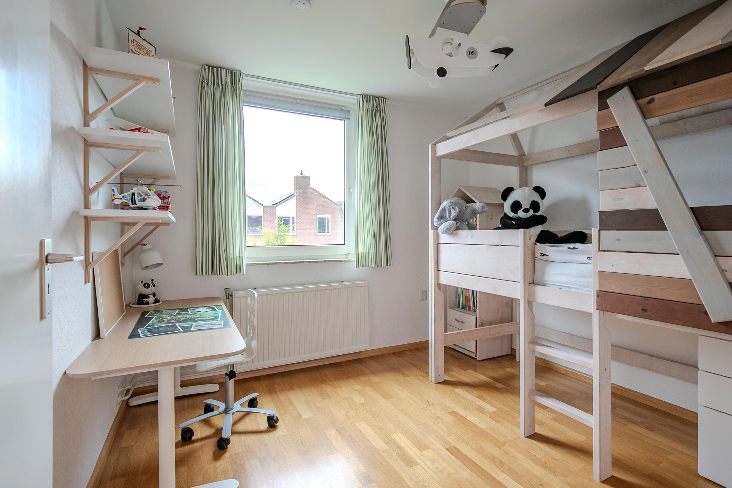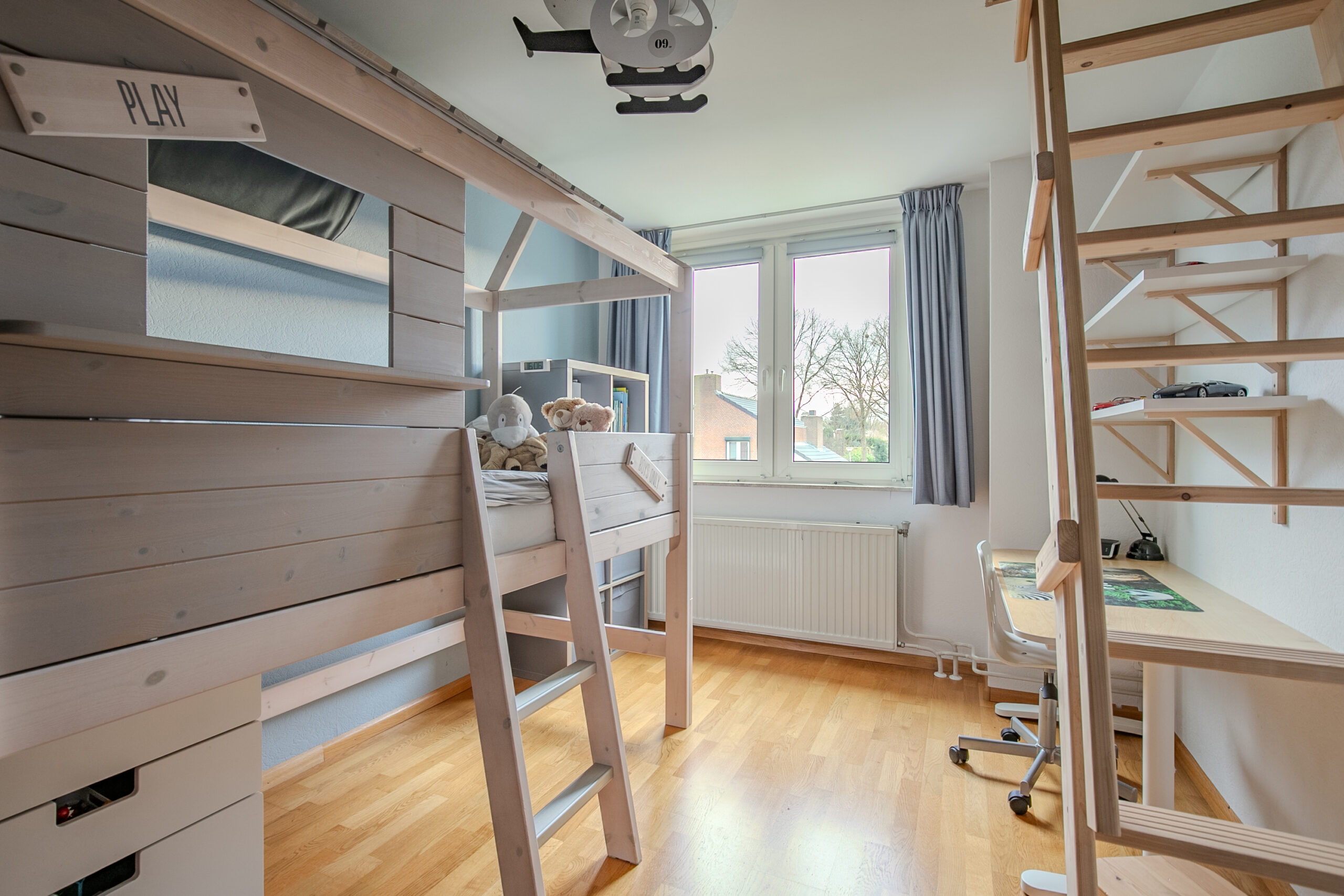 Via een vaste trap bereikt u de geïsoleerde zolderverdieping met veel bergruimte en een separate speelkamer, voorzien van een Velux-dakraam en ingebouwde verlichting.