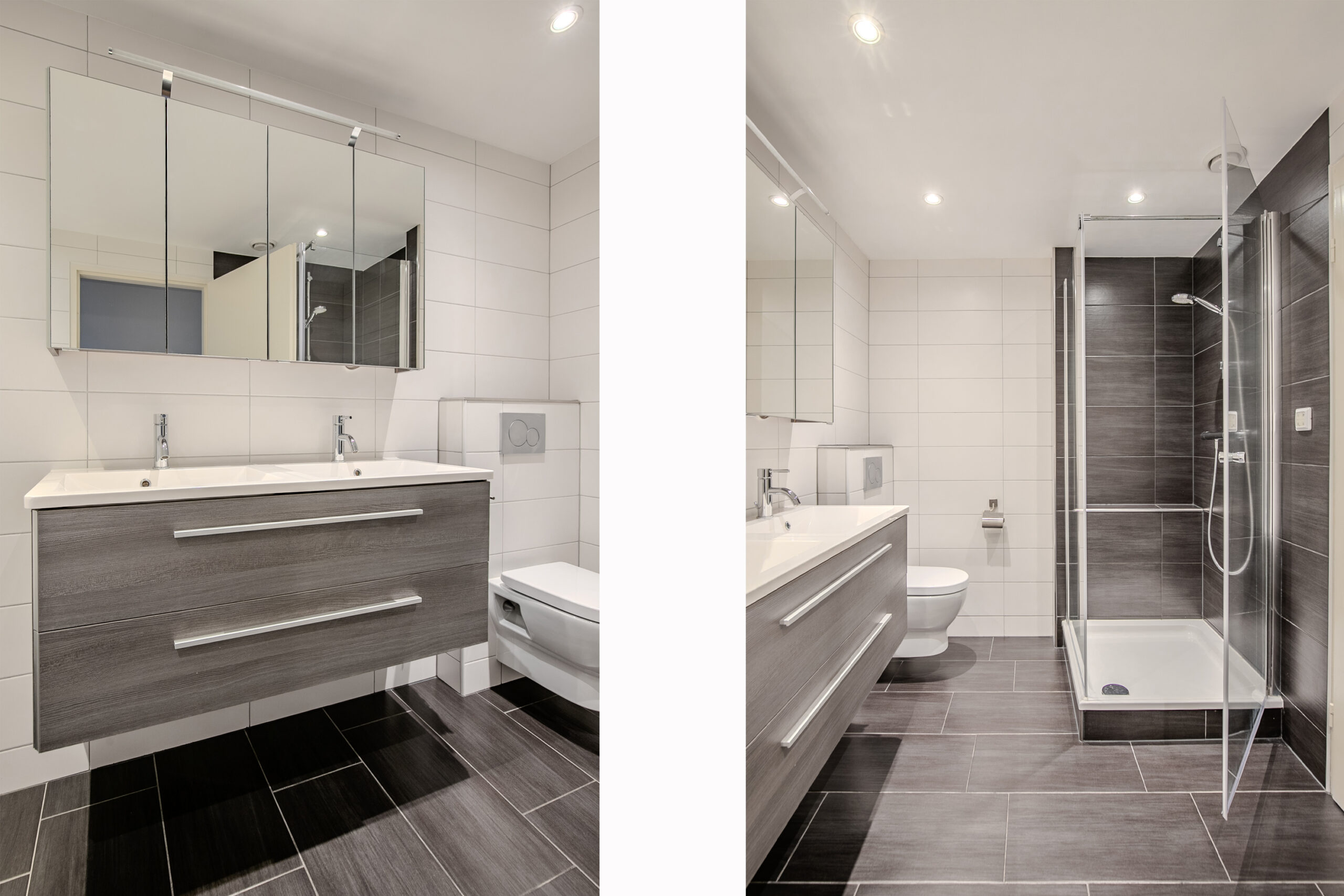 - Badkamervoorzieningen Toilet, douche, dubbele wastafel