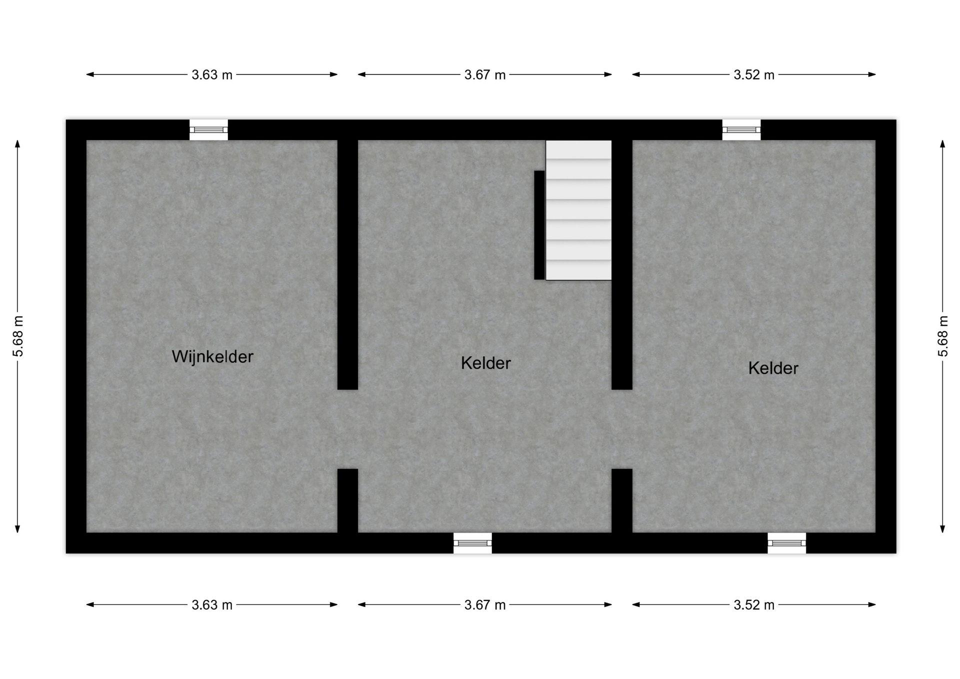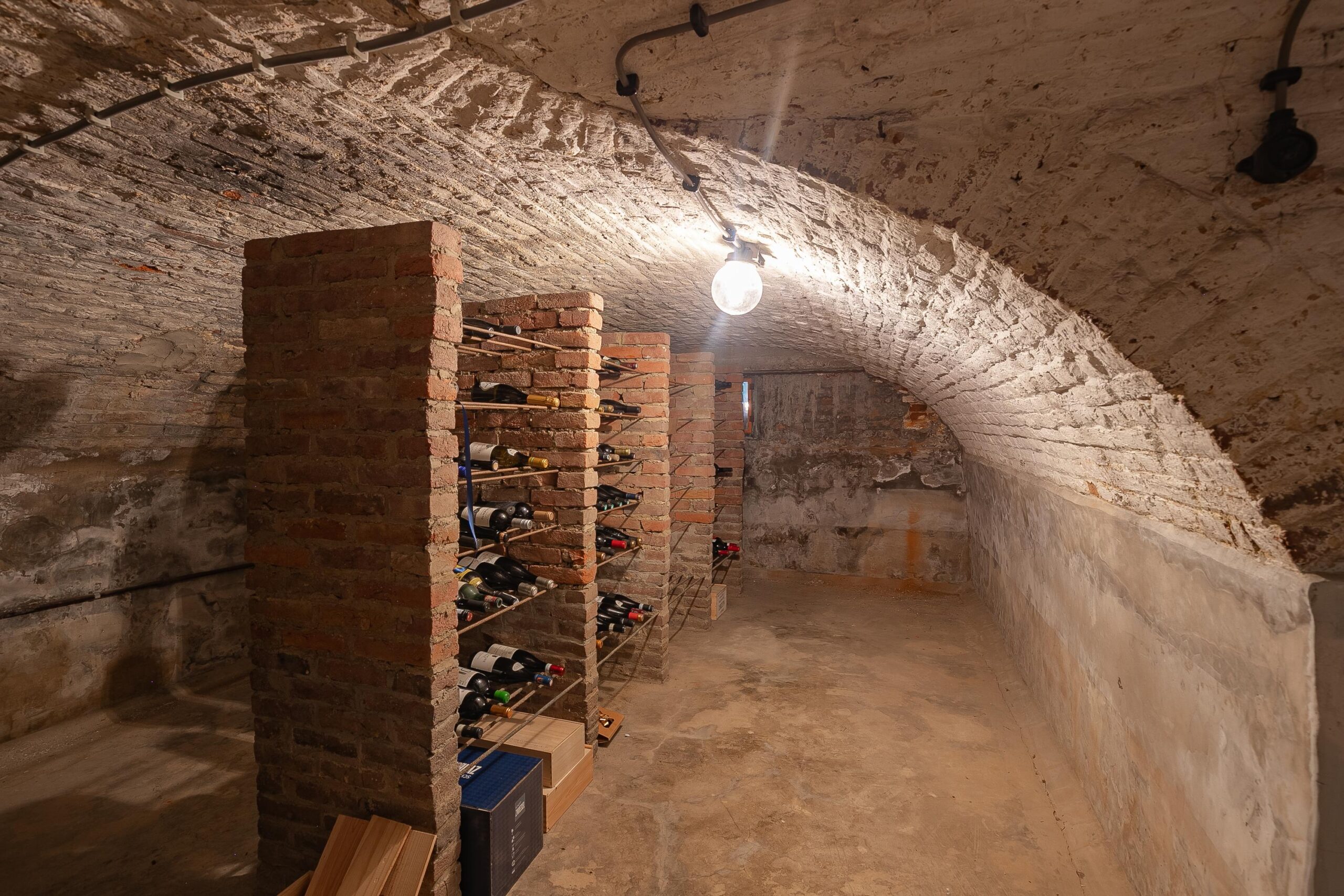 Drie gewelfde kelders (resp. ca. 20.8m², 20.8m² en 20m²) met zichtbaar metselwerk. Eén kelderruimte is in gebruik als de ideale wijnkelder.