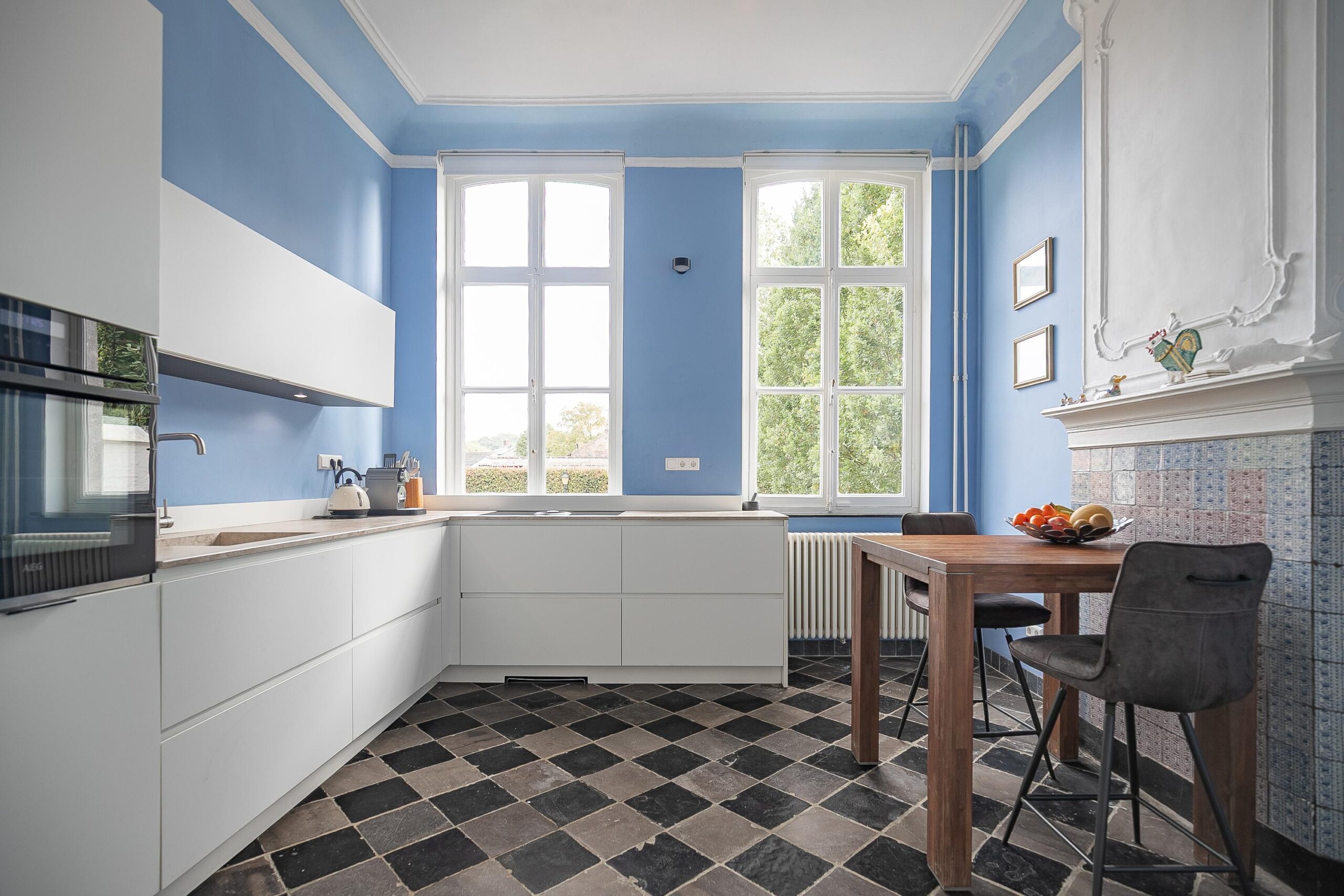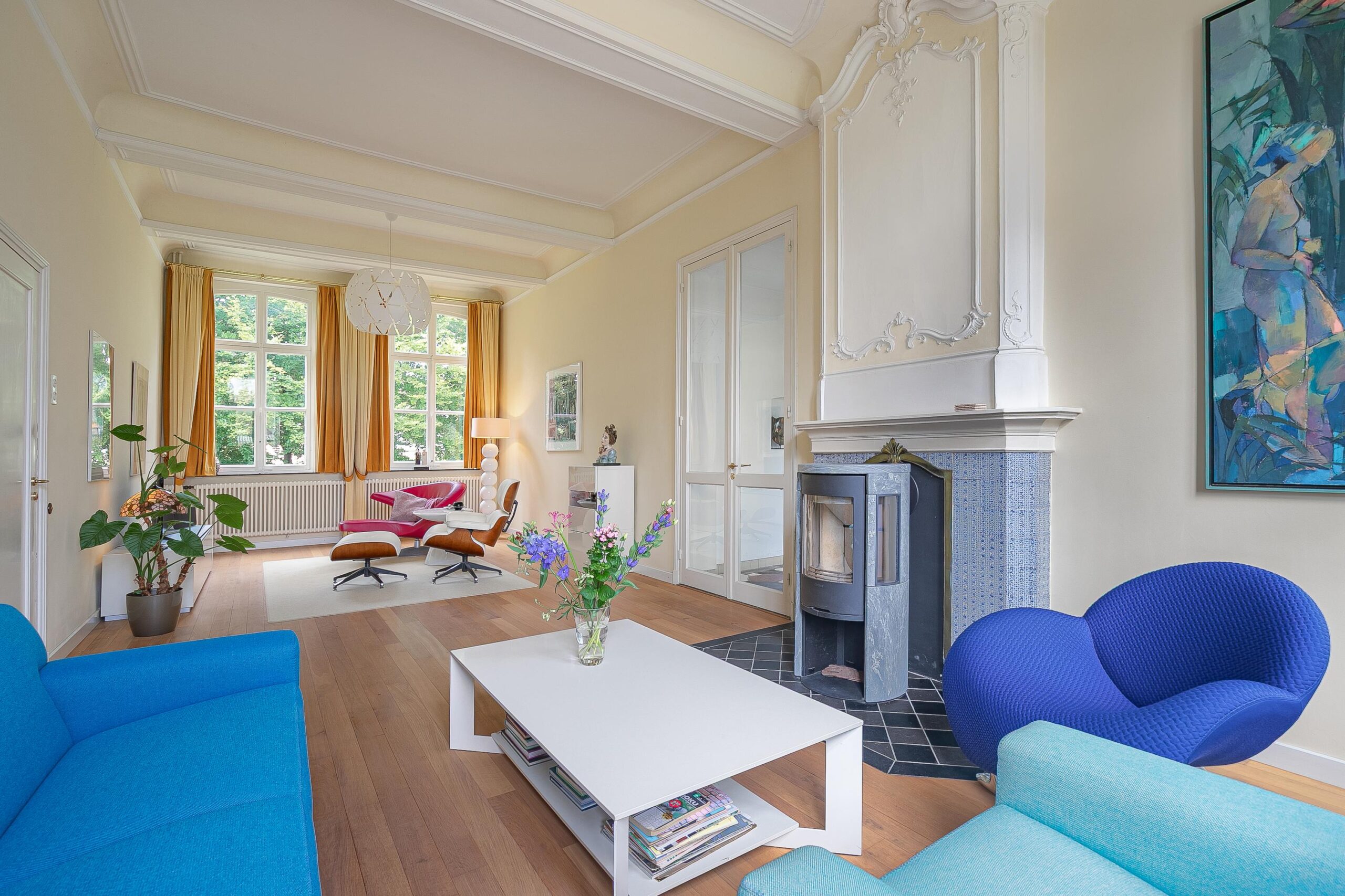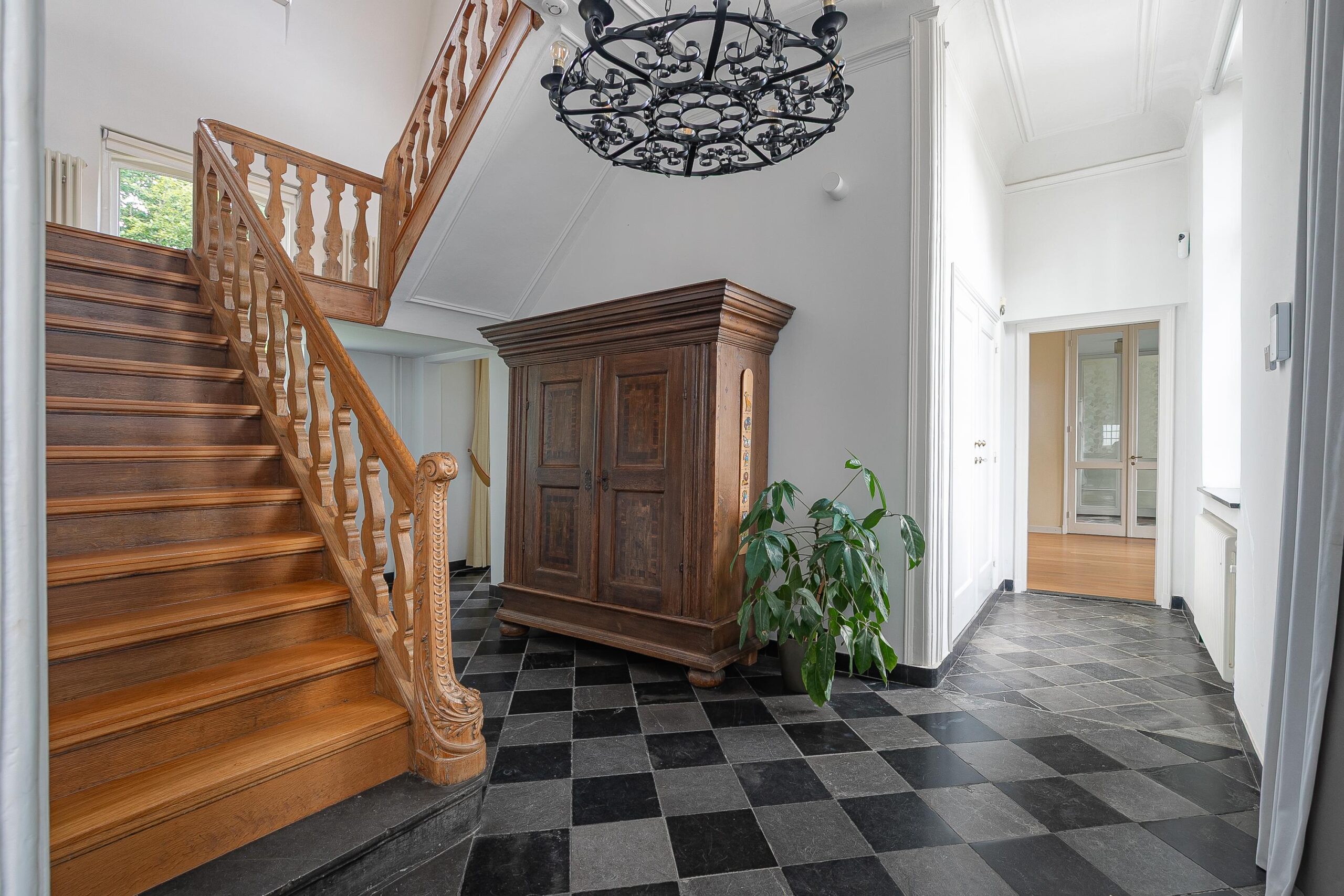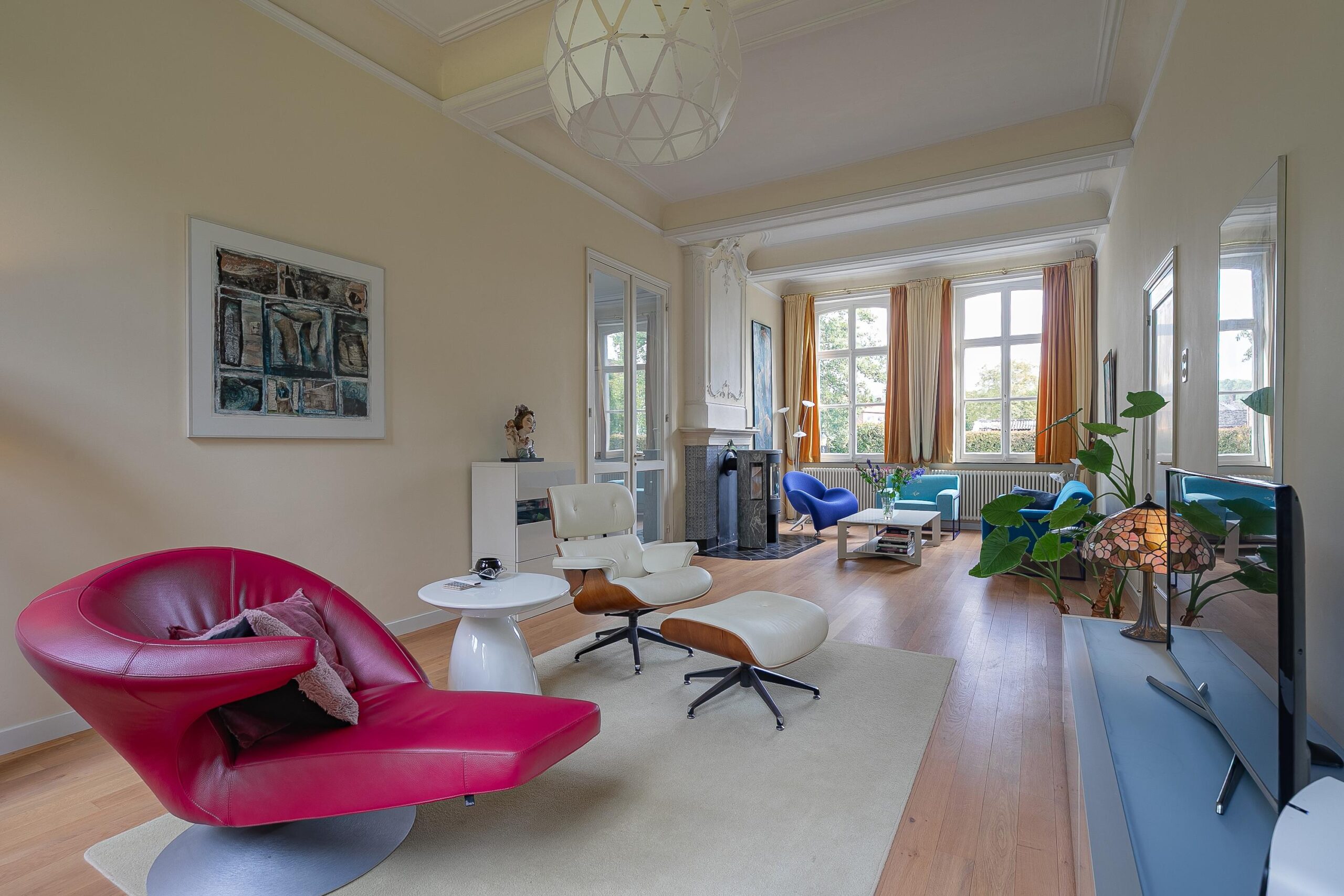 Statige entree. Royale hal met natuurstenen vloer en trappenhuis met karaktervolle eikenhouten trap, garderobekast en ruim toilet met fonteintje. Sfeervolle woonkamer (ca. 39.7m²) met veel lichtinval, parketvloer, originele schouw, spekstenen houtkachel en plafond met ornamenten. Ruime eetkamer (ca. 30.2m²) met parketvloer en houtkachel. Keuken (ca. 15m² / bwjr. 2018) met originele schouw en moderne aanrechtcombinatie voorzien van de volgende apparatuur: inductiekookplaat met geïntegreerde afzuiging, koelkast met vriesvak, vaatwasser, stoomoven, spoelbak en afzuigkap. Wasruimte (ca. 5.7m²) met witgoedaansluitingen en meterkast. Bijkeuken (ca. 4.1m²) met vliering.