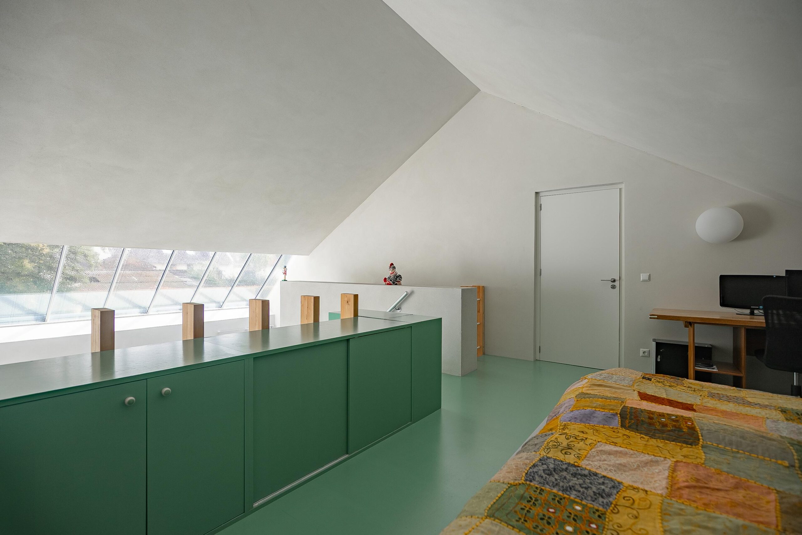 Via een luik (badkamer) bereikbare zoldervliering met een nokhoogte van 1.22 meter.