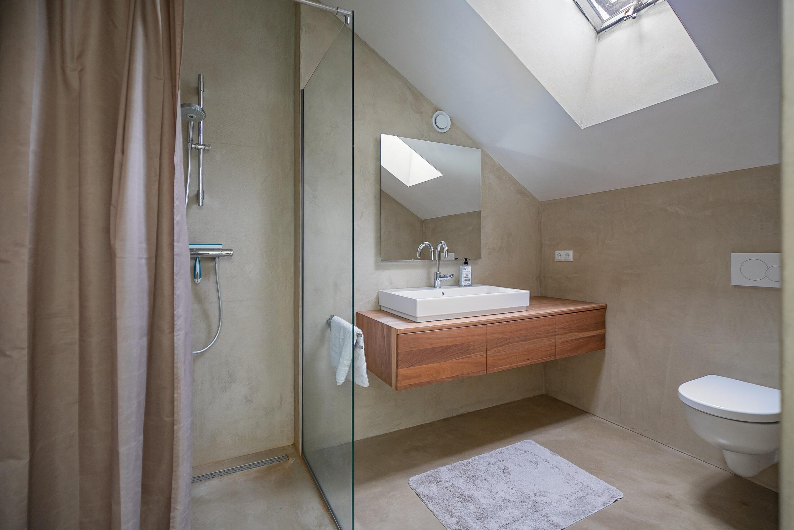 - Badkamervoorzieningen Toilet, douche, dubbele wastafel, wastafelmeubel, toilet, wastafel, wastafelmeubel, inloopdouche