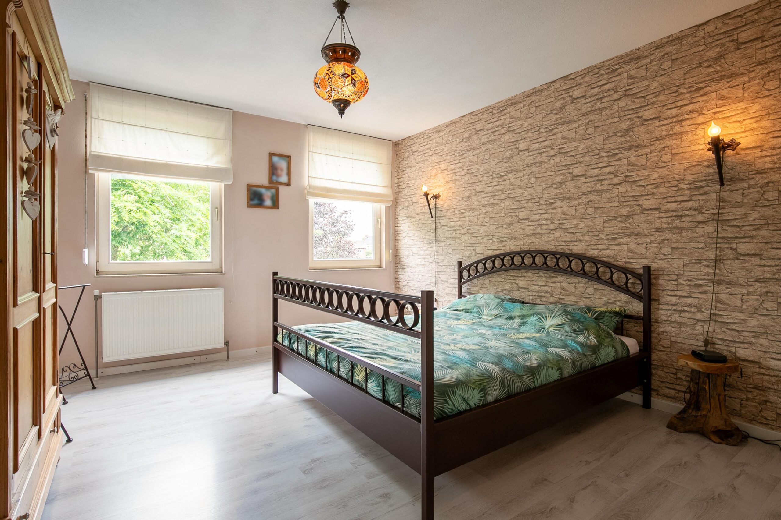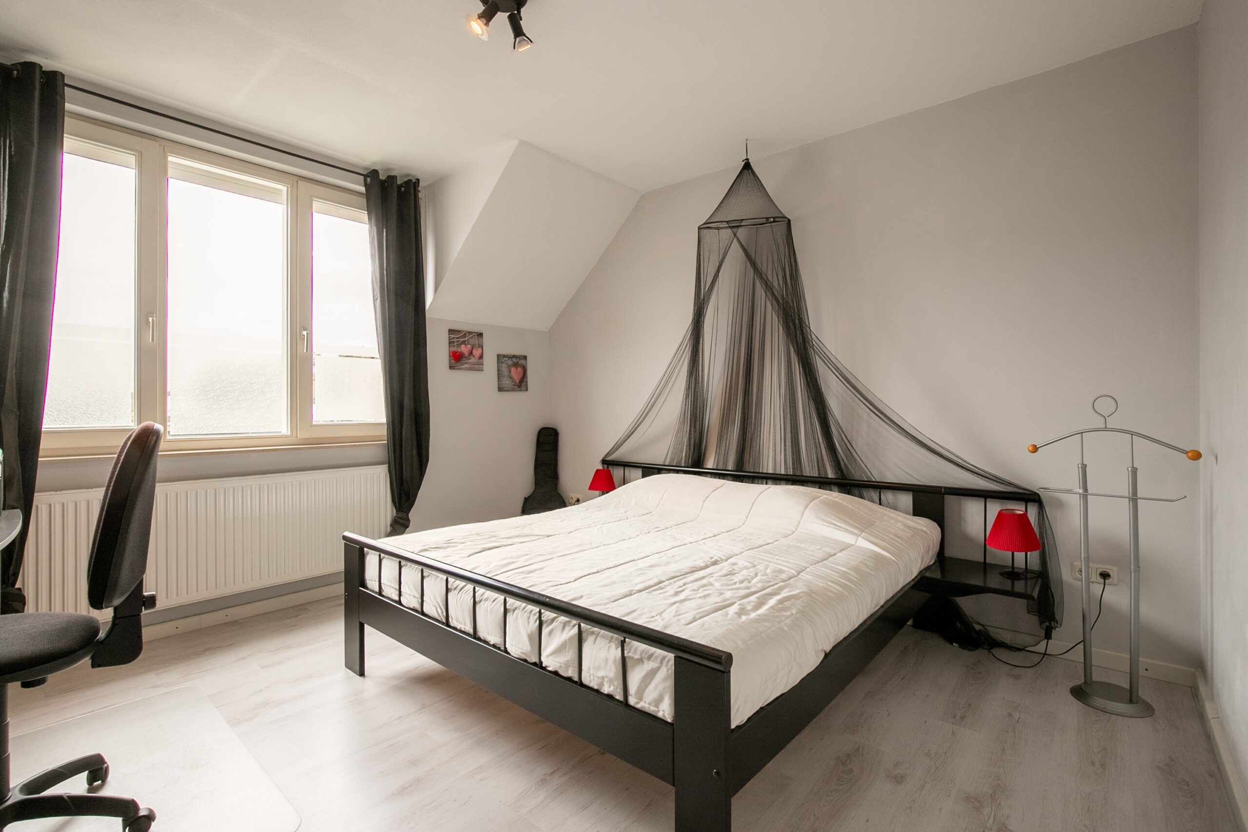 De overloop biedt toegang tot 3 slaapkamers met laminaatvloer, respectievelijk 4.40 x 3.95, 3.85 x 3.80 en 4.12 x 2.40 (17, 15 en 10 m²). De laatste kamer heeft een dakterras. De badkamer is geheel betegeld en voorzien van een ligbad, douchecabine, wastafel en tweede toilet.