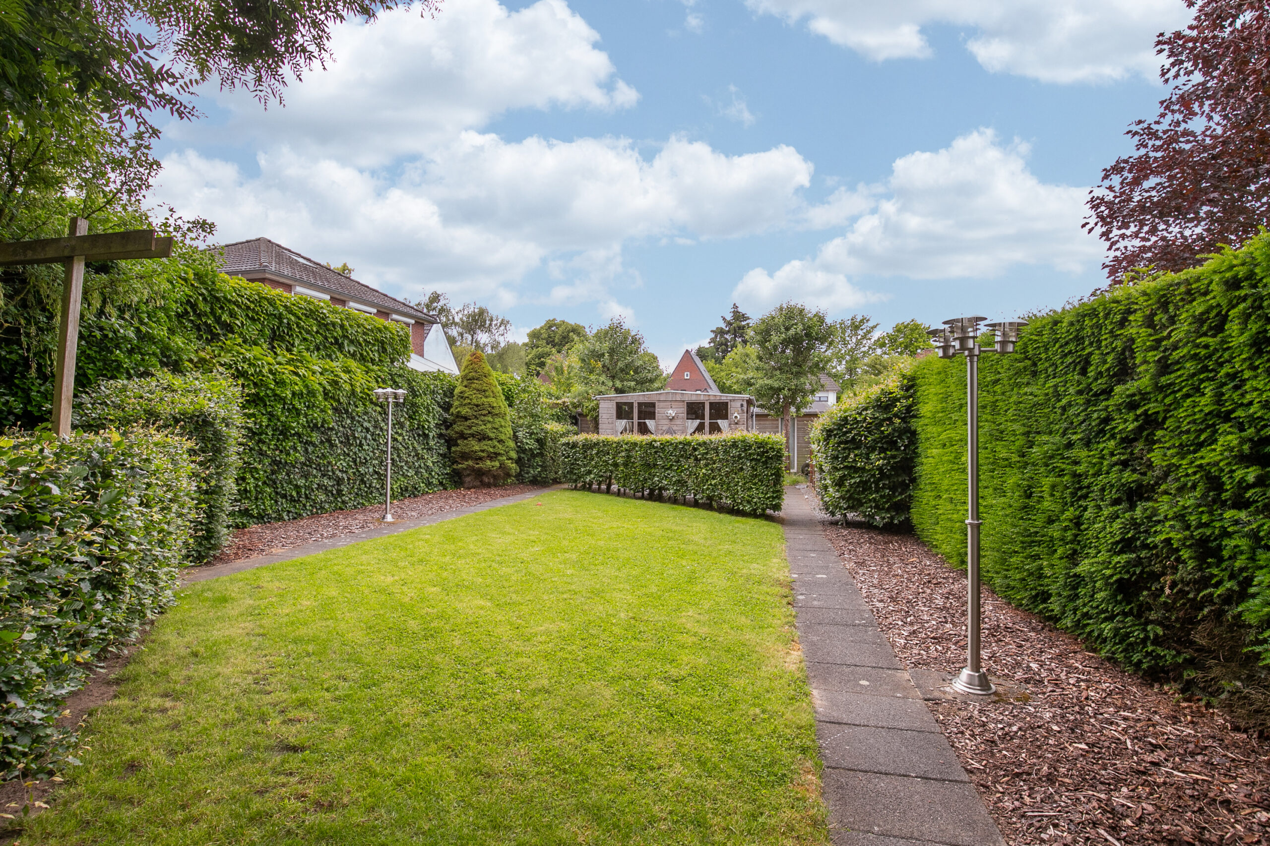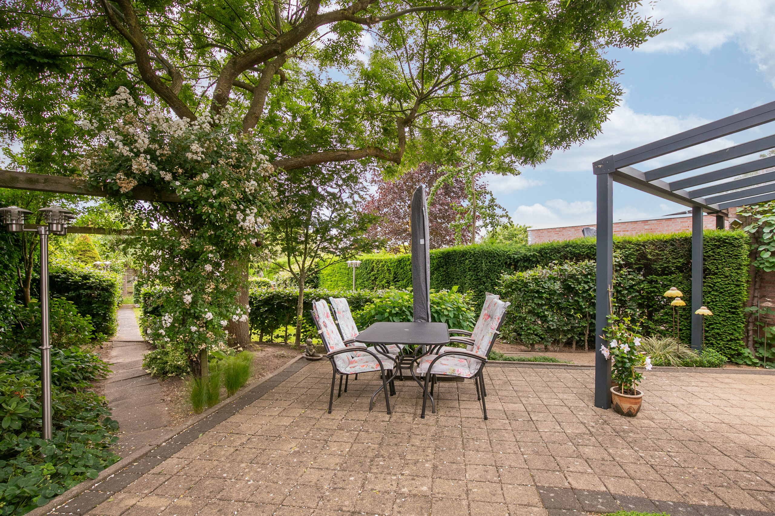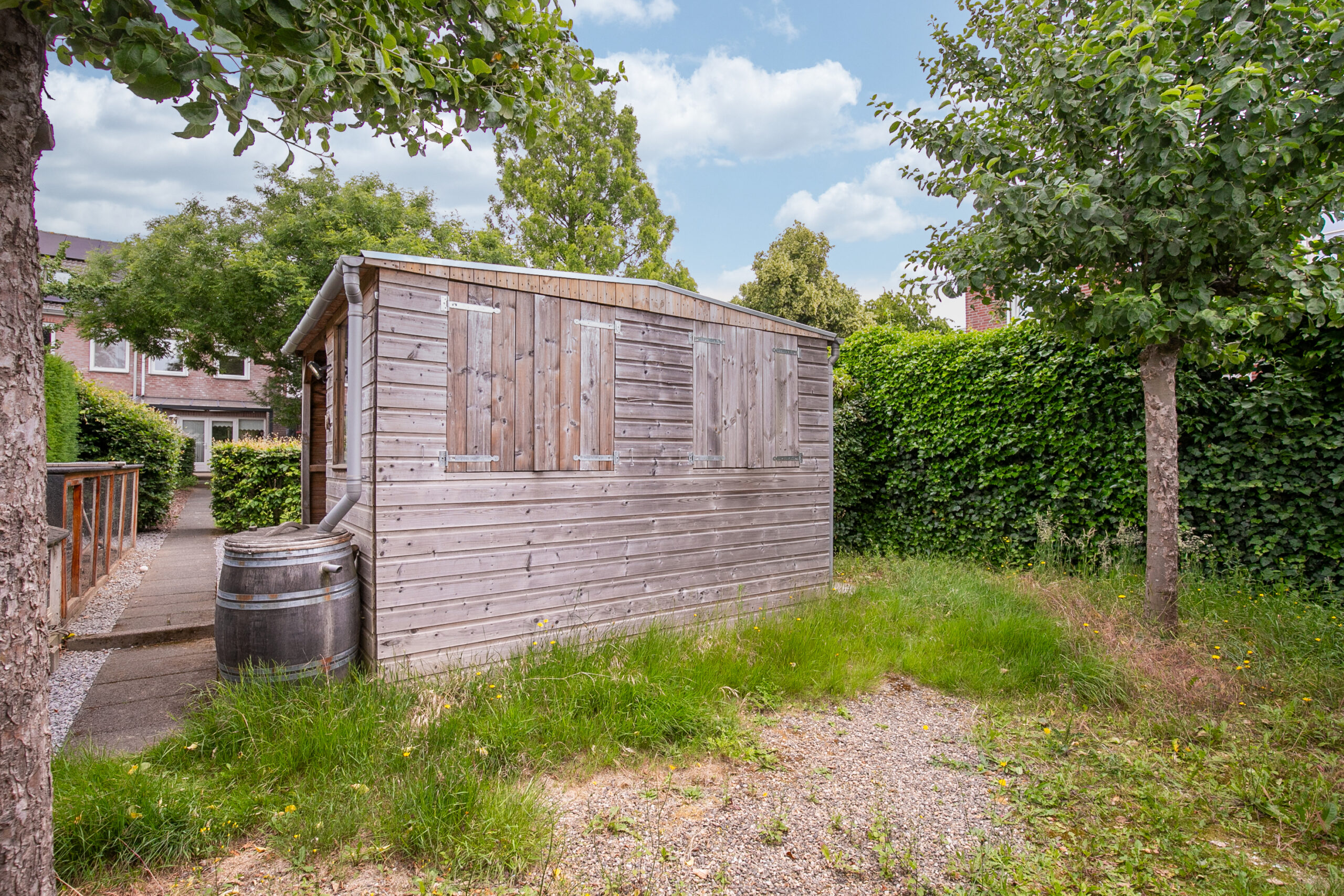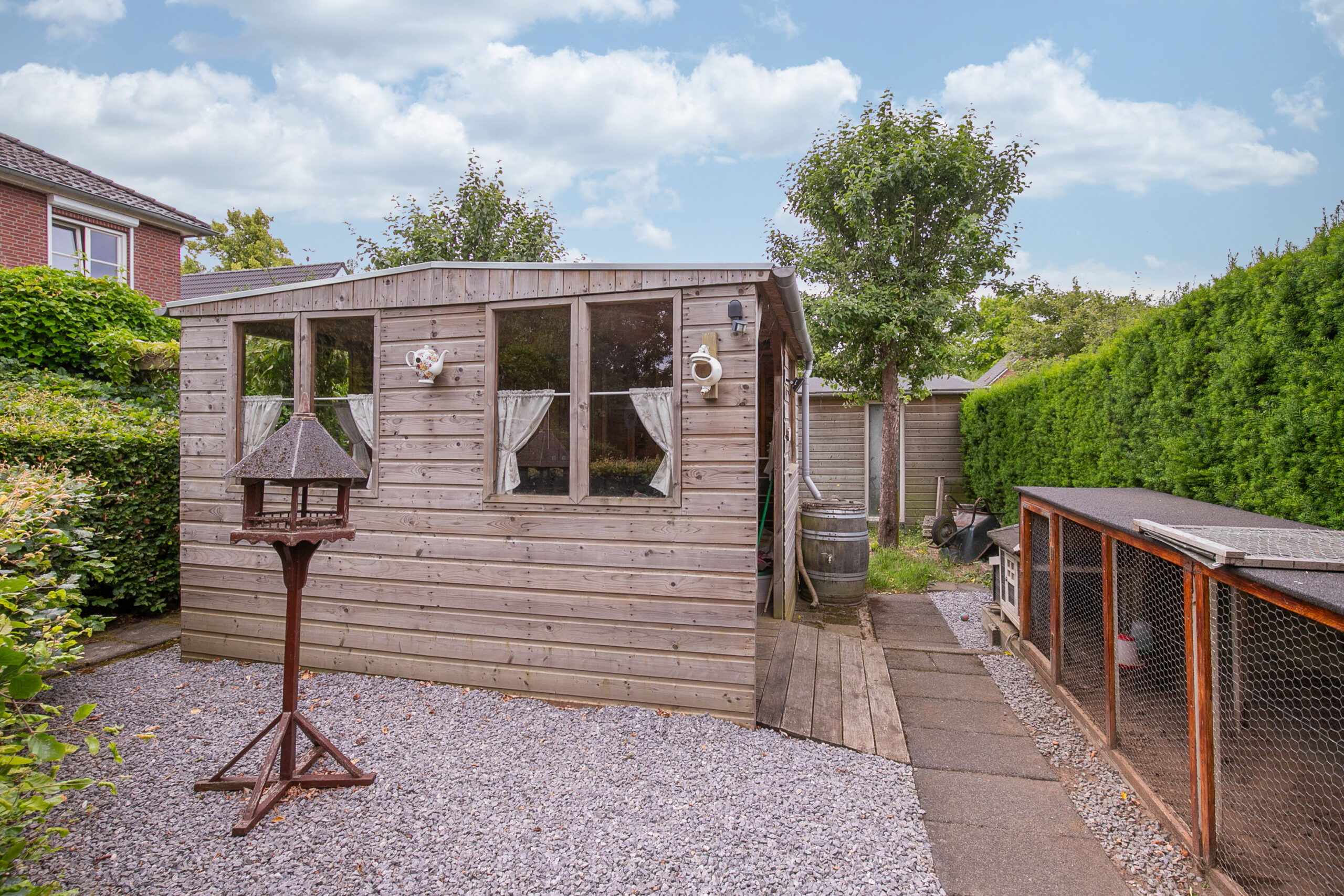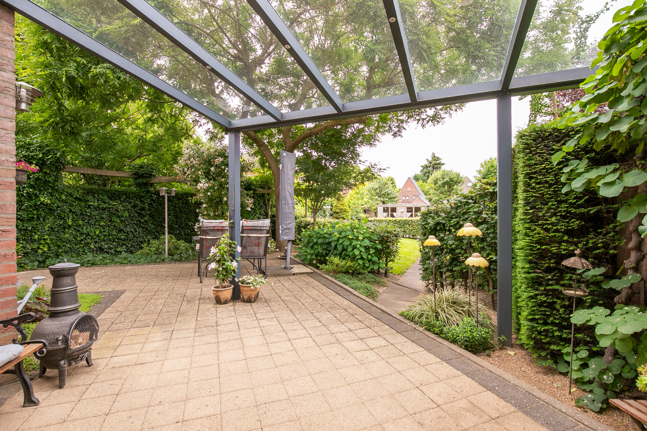 De tuin is gelegen op het zuidwesten, hier is de hele dag een plek een zon te vinden. Het overdekte terras 4.00 x 3.70 zorgt voor veel meer uren heerlijk buitenleven: de tuinset staat altijd klaar! De tuin is geheel omsloten en is maar liefst 35 meter diep. De aanplanting zorgt voor een tuin die het hele jaar groen is en beschutte en schaduwrijke plekjes. Achter in de tuin is een houten tuinhuis 3.60 x 3.60 geplaatst, dit is ingericht als een gezellig buitenverblijfje. Hierachter is een handige berging/schuur 9.20 5.70, hier kan veel geklust worden of spullen opgeslagen worden.