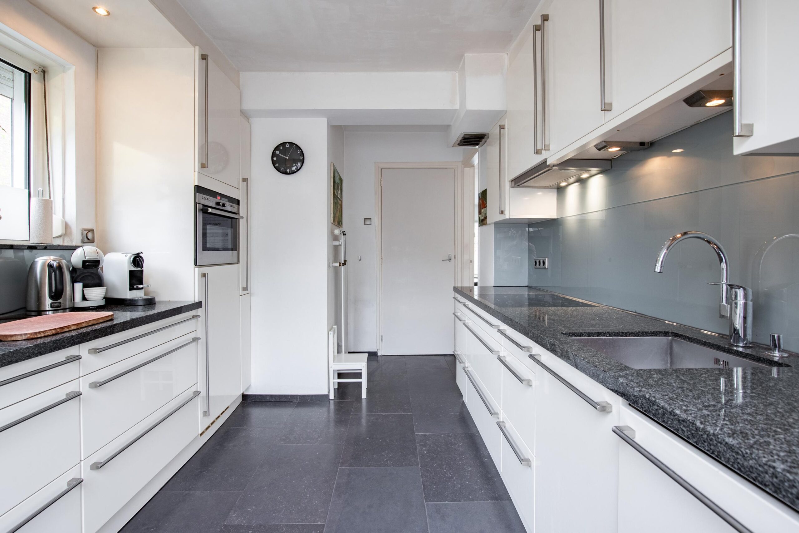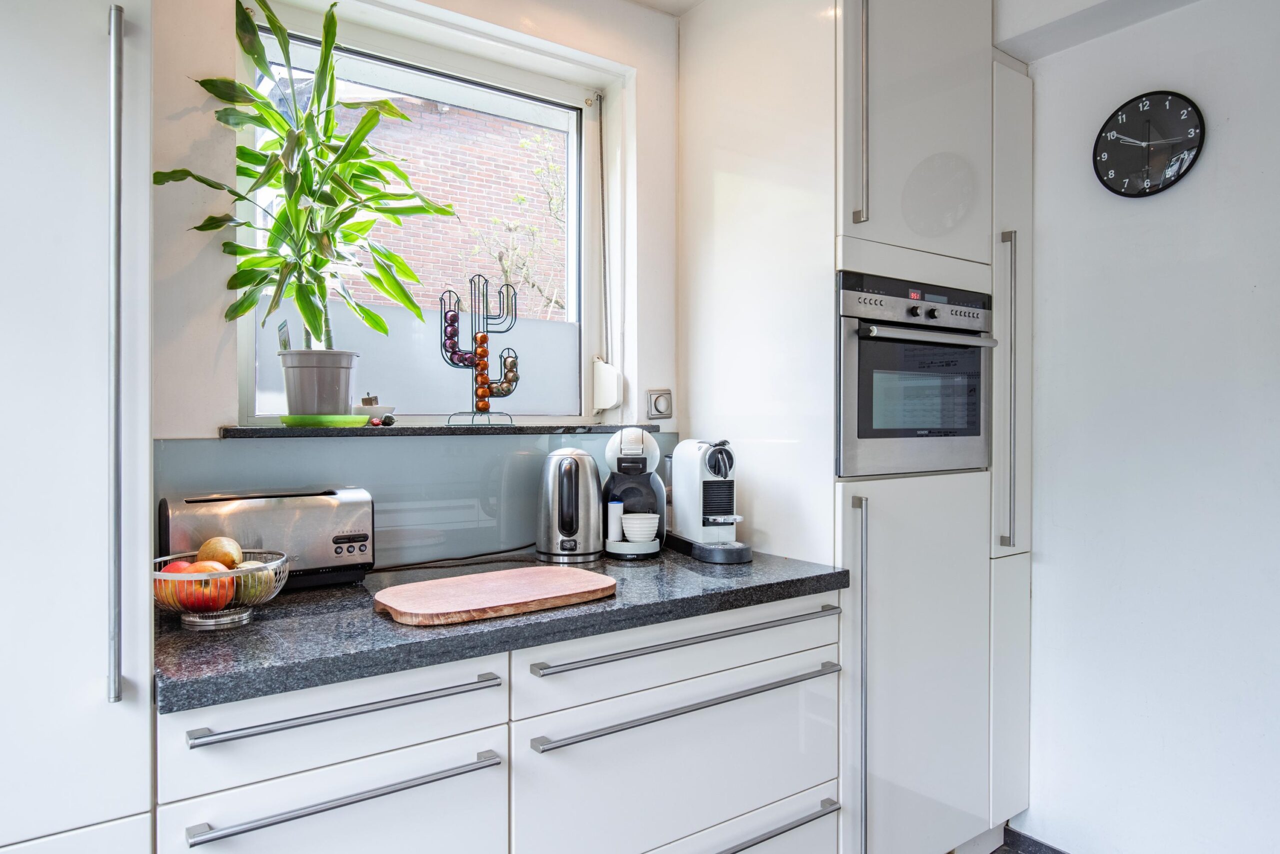 De gesloten keuken is voorzien van twee wandopstellingen inclusief de navolgende inbouwapparatuur: inductiekookplaat, afzuigkap, oven, vaatwasser en koelkast.