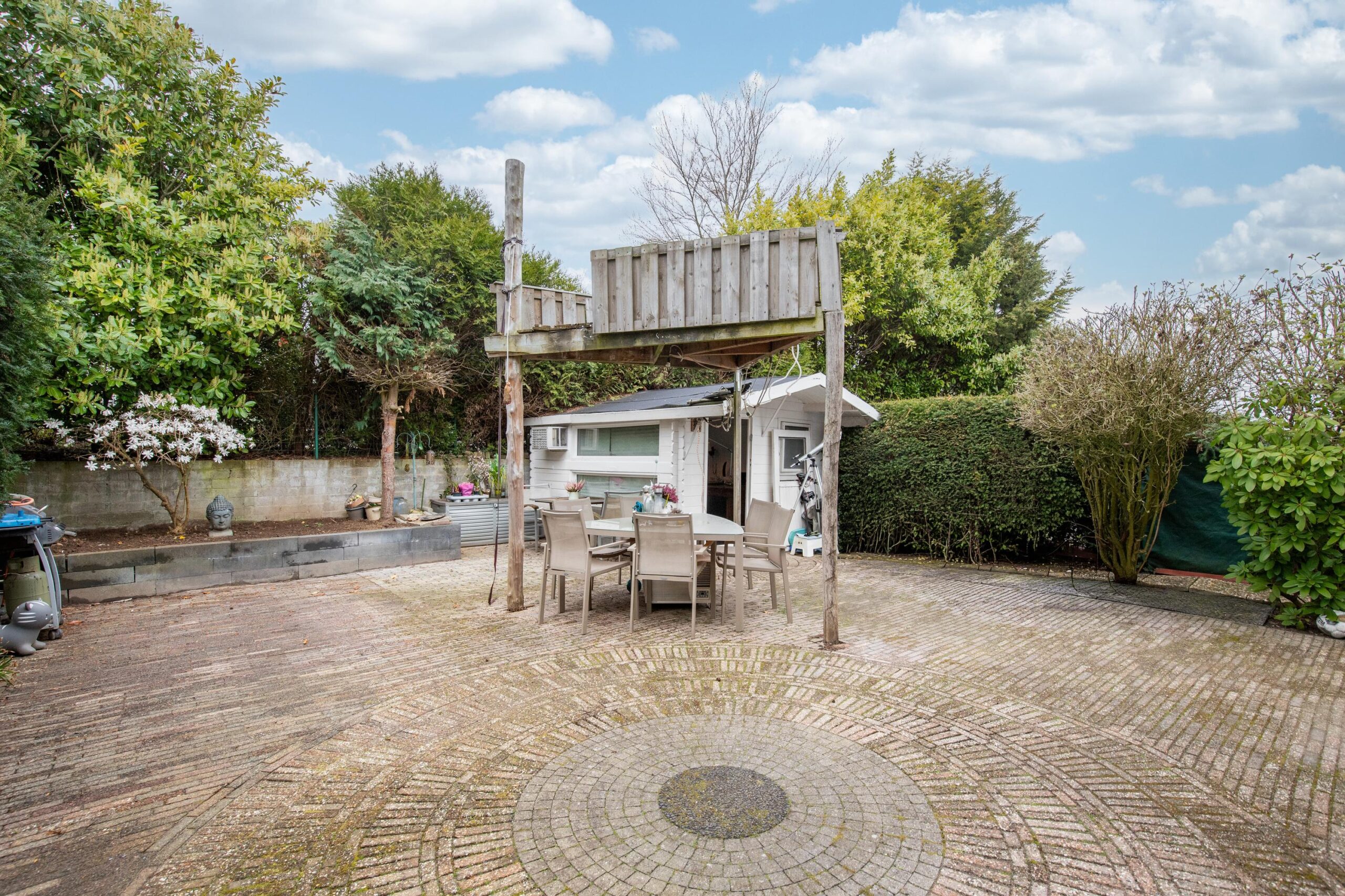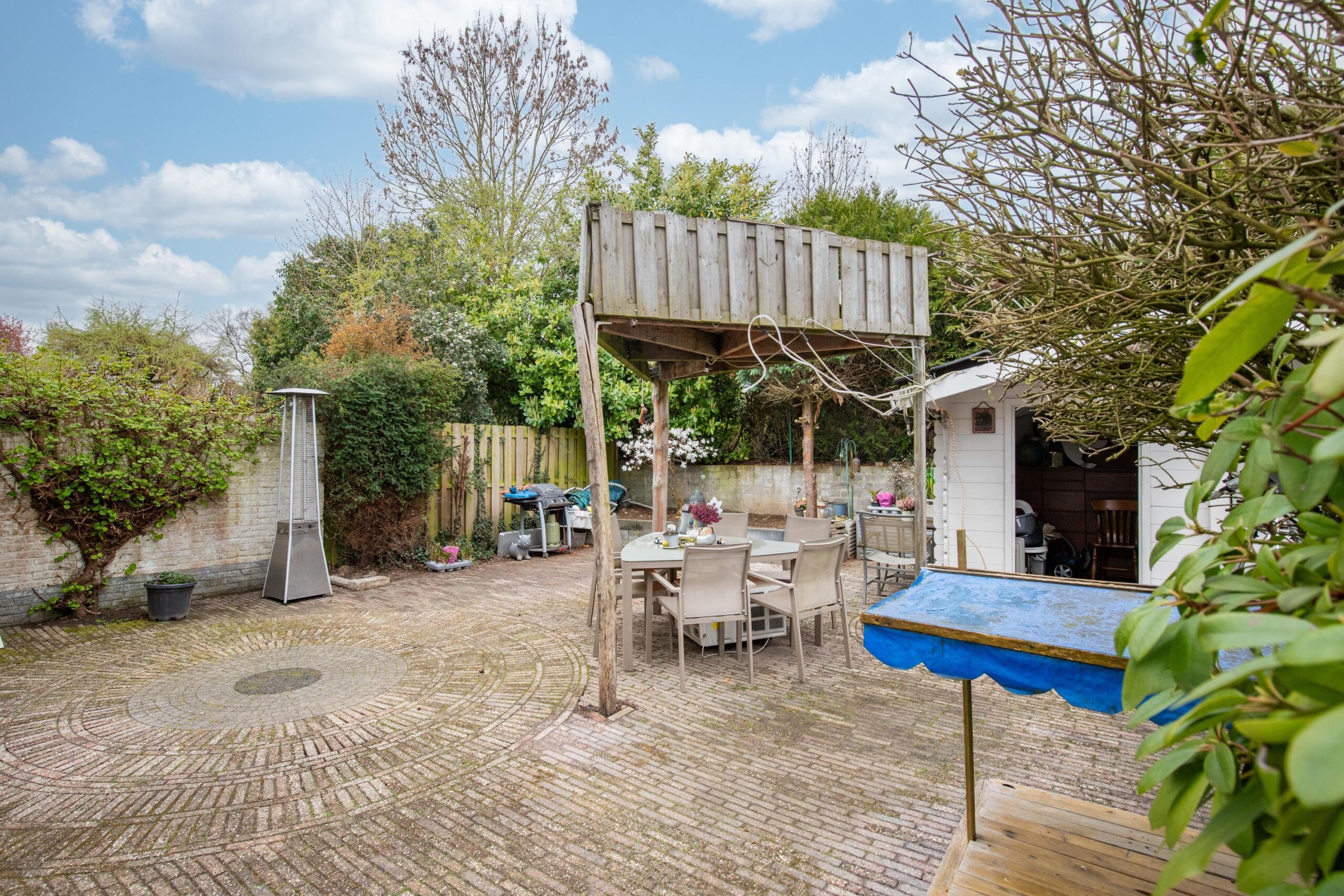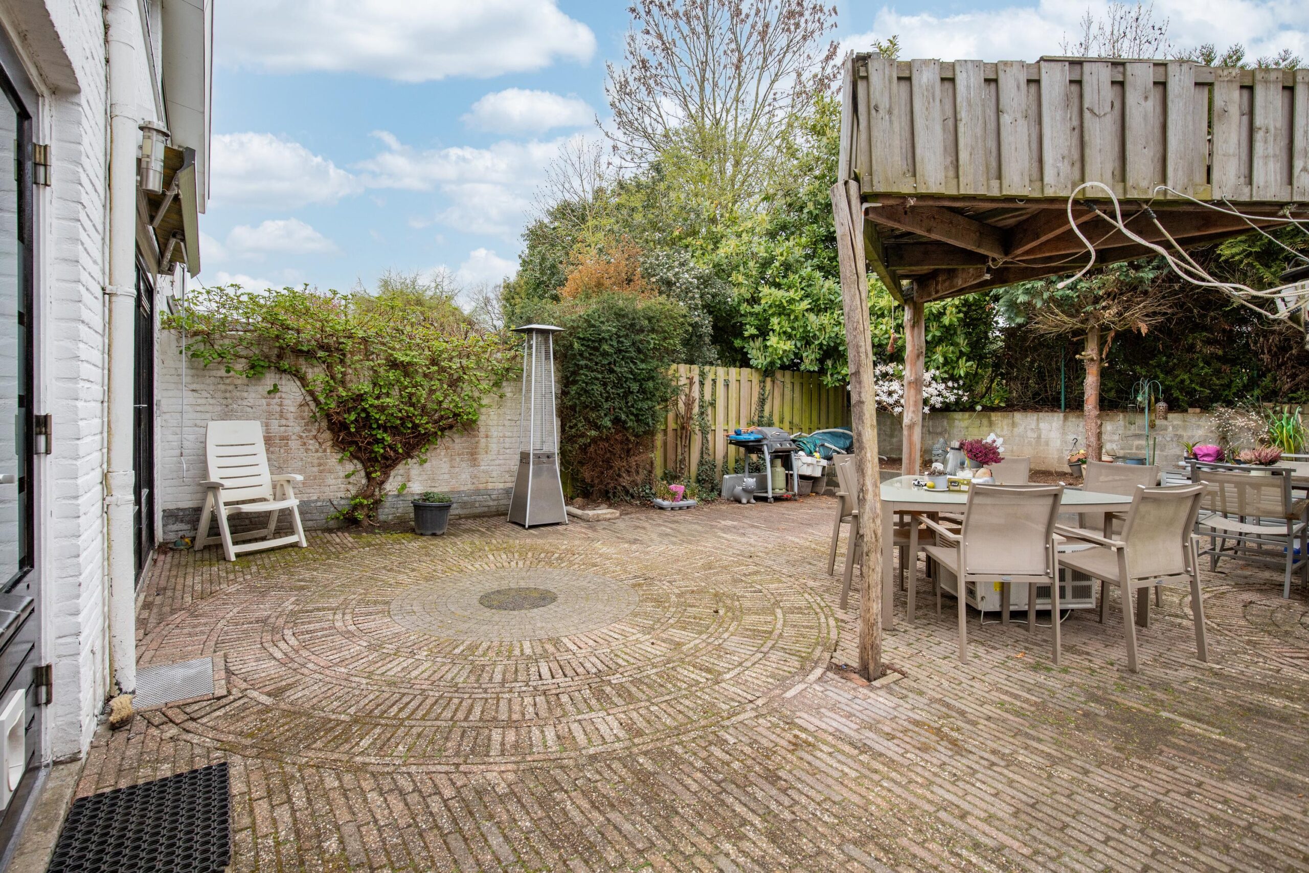 Zowel vanuit de keuken als de woonkamer is de achtertuin bereikbaar. De geheel omsloten achtertuin is zonnig gelegen en biedt optimale privacy. Achterin de tuin bevindt zich een praktische houten berging, die nu in gebruik is als kantoorruimte. De tuin is tevens via een achterom toegankelijk.