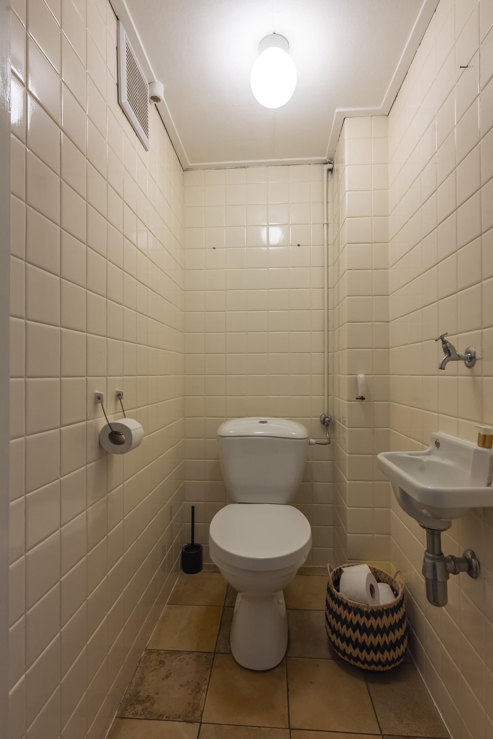 Middels de authentieke hal/entree met meterkast, trapopgang en geheel betegelde toiletruimte met staand toilet en fonteintje komt u in de woonkamer en keuken.