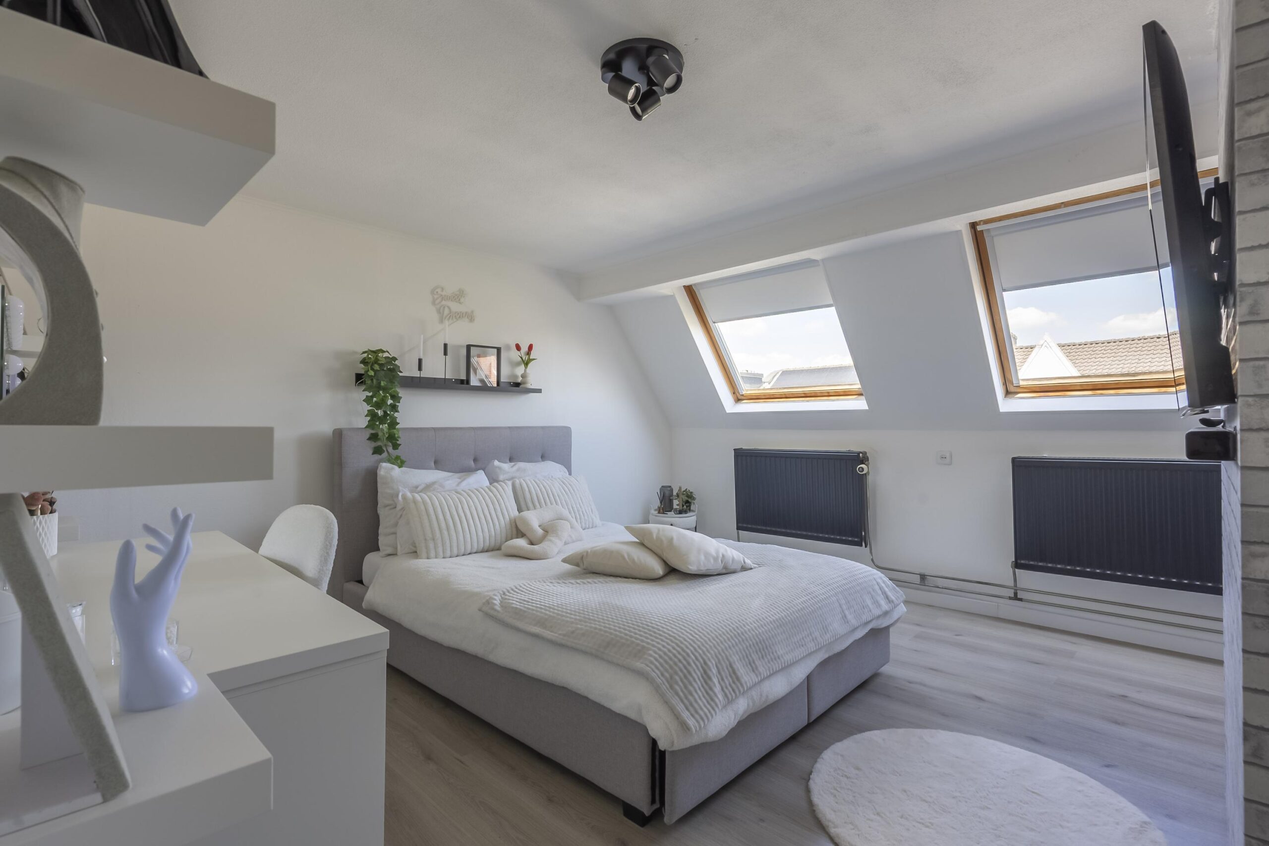 De eerste slaapkamer bestaat uit 2 delen waardoor er een mooie inloopkastenkamer gemaakt kan worden. Deze slaapkamer is respectievelijk groot. 27 m².