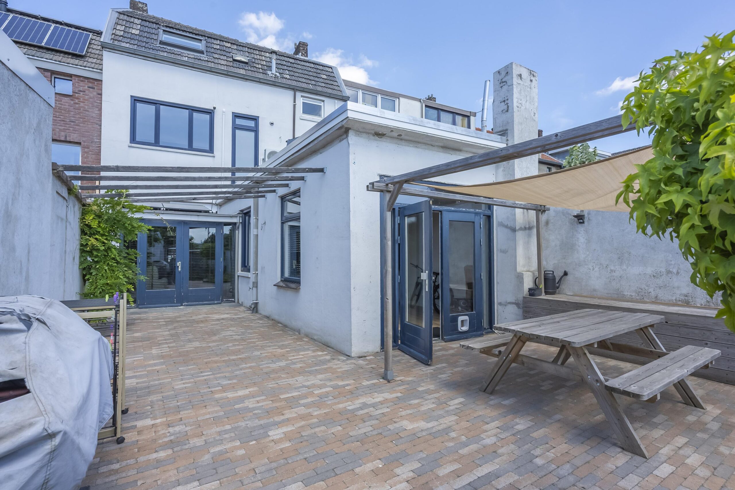 De gezellige onderhoudsvriendelijke stadstuin met achteringang is gelegen op het zuid westen.