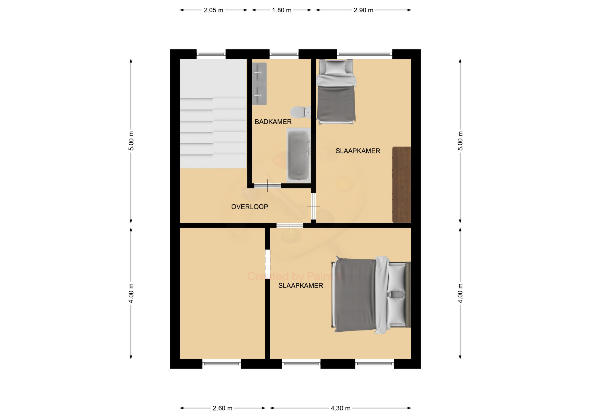 Middels de overloop zijn de twee slaapkamers alsmede de badkamer te bereiken.