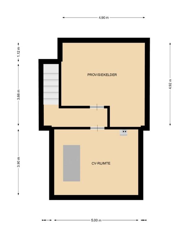 Het souterrain is onderverdeeld in 3 ruimte.  Deze zijn respectievelijk groot ca. 20 m², 21 m² en 4 m² in een van deze 3 ruimte is de Nefit CV ketel gesitueerd.