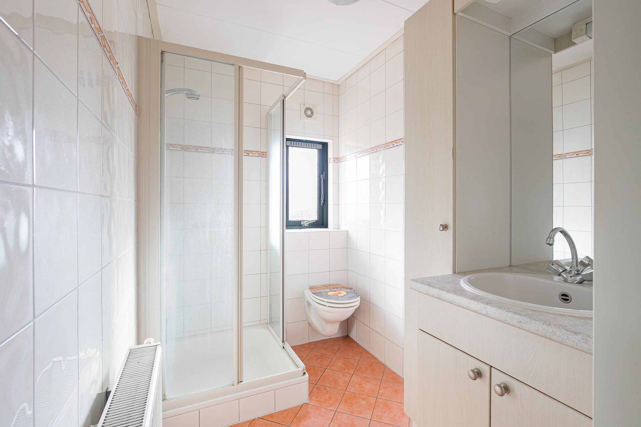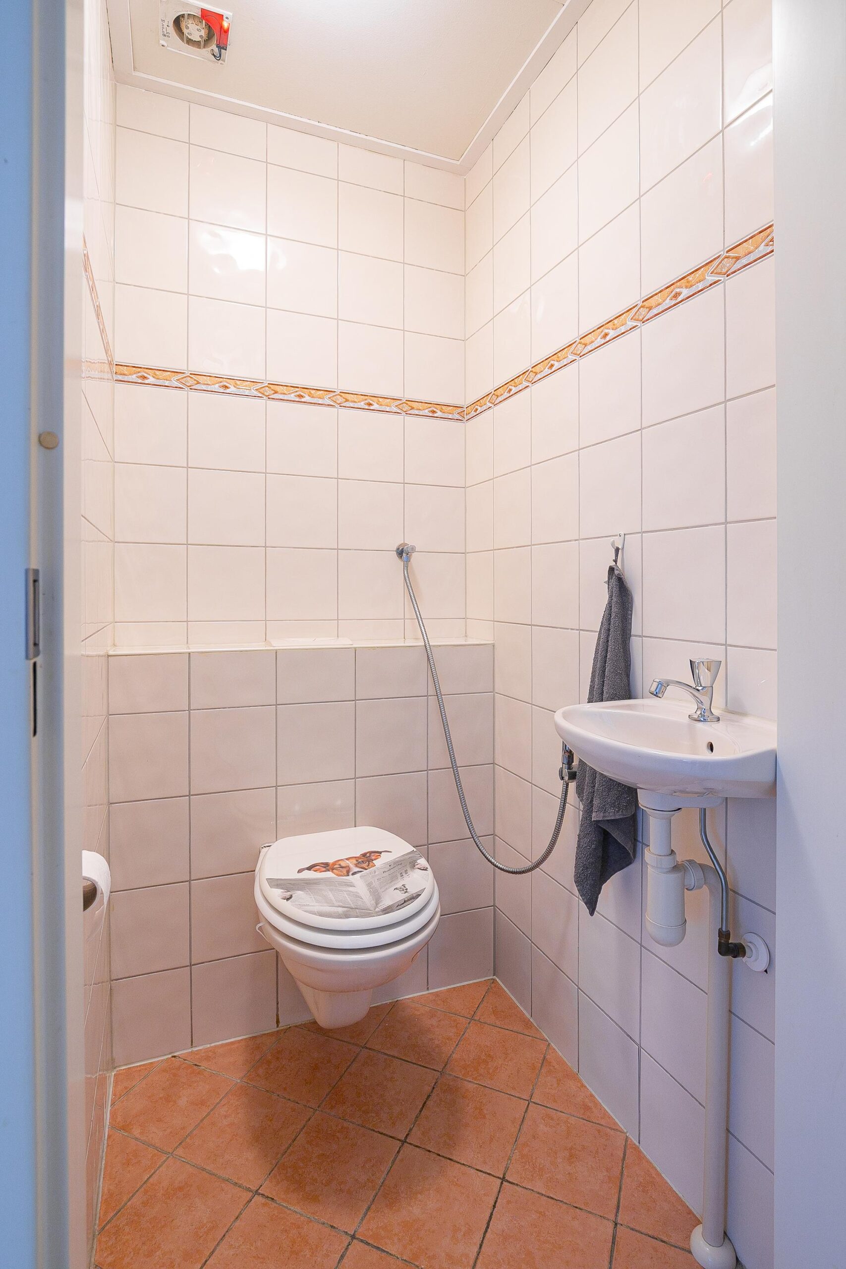 De badkamer is geheel betegeld en uitgerust met een douche, een toilet en een wastafelmeubel. Daarnaast is er nog een separaat toilet met fonteintje aanwezig, wat het gebruiksgemak voor bewoners en gasten vergroot.