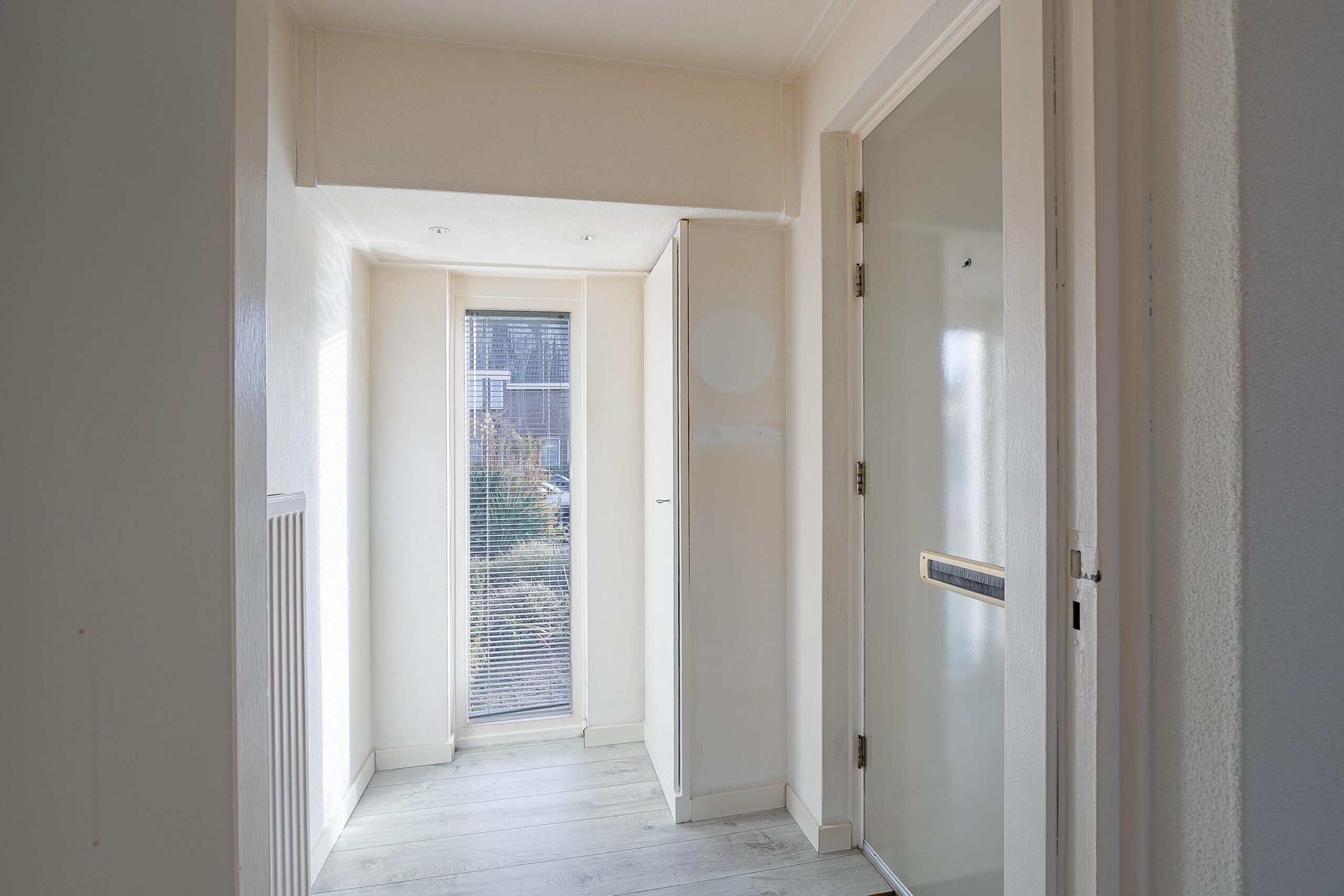 Via de voortuin te bereiken entree. Ontvangsthal met garderobe, meterkast en toegang tot de woonkamer.