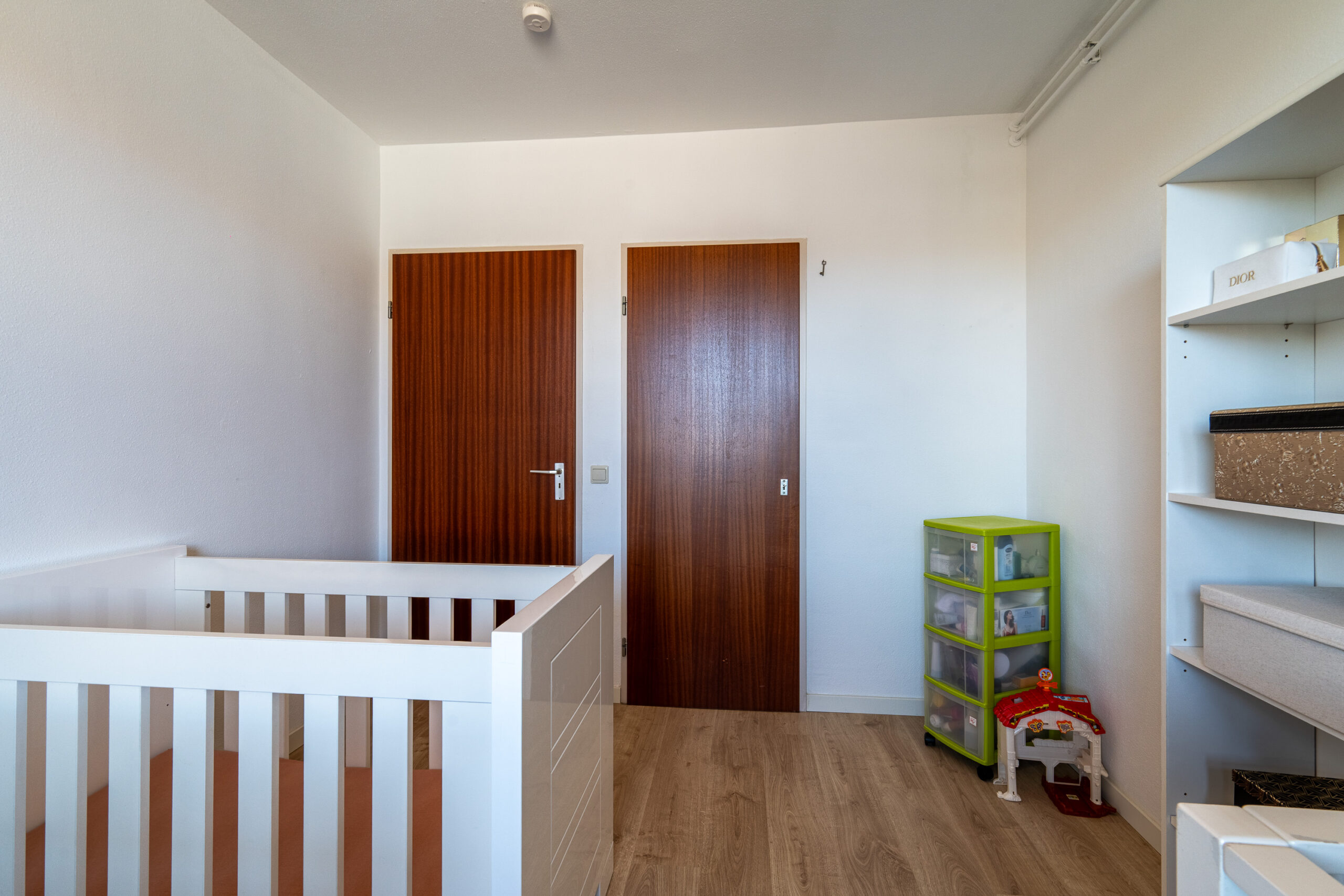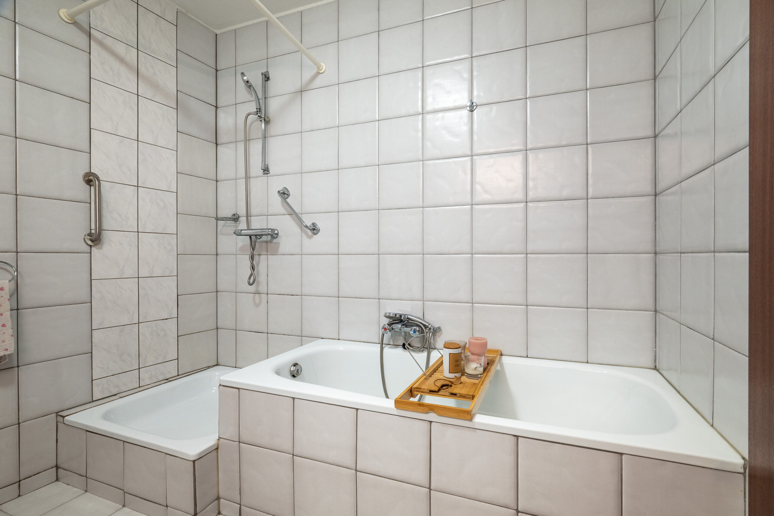 Er zijn twee ruime slaapkamers (met muurkast) en een badkamer, geheel betegeld, met badmeubel, ligbad, separate douche en 2e toilet.