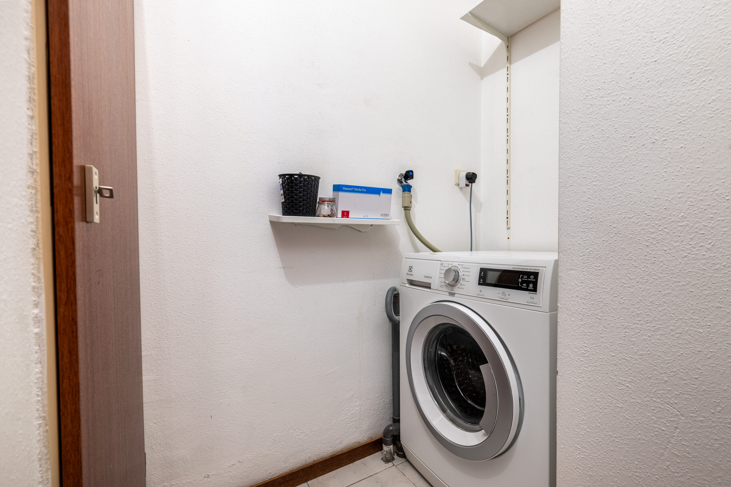 2e verdieping: ruime hal, meterkast, geheel betegeld met fonteintje, en een tweetal bergingen met o.a. wasmachine-aansluiting en C.V.-opstelling.