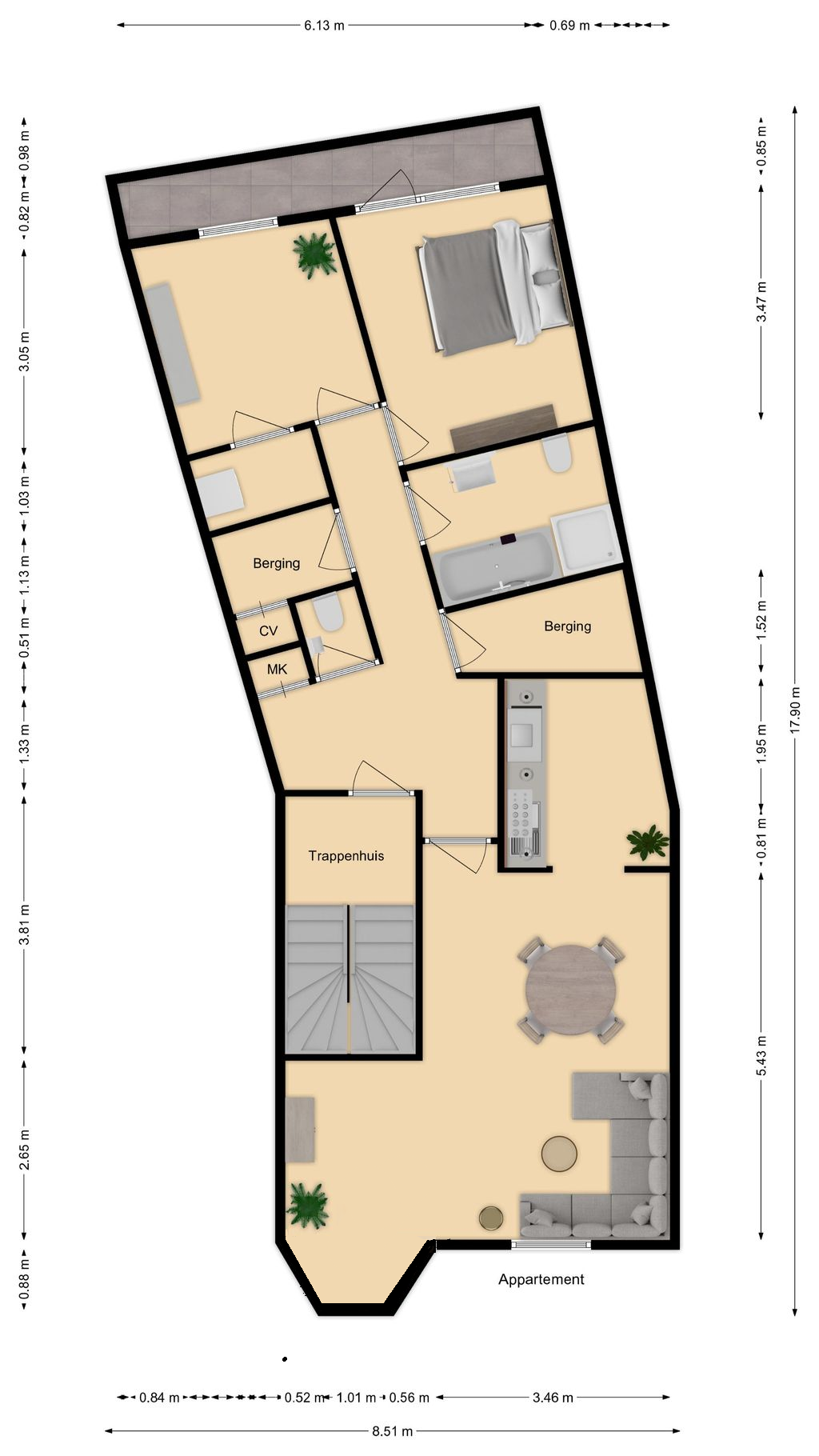 - Oppervlakte gebouwgebonden ca. 8 m2