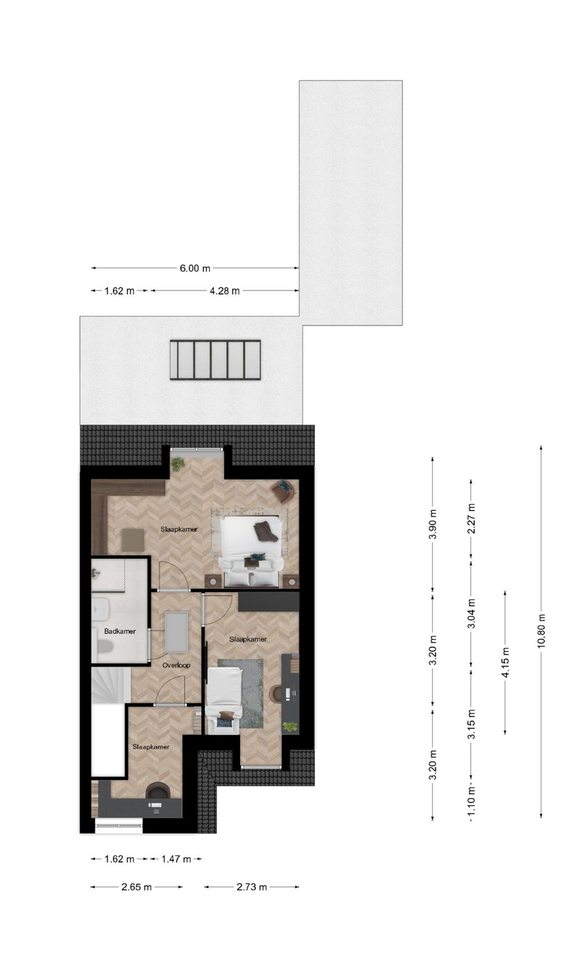 Middels vaste trap bereikt u de overloop met toegang tot twee royale slaapkamers, een multifunctionele ruimte en een badkamer. Middels eenvoudige indelingswijzigingen is het realiseren van een extra slaapkamers in overleg met de aannemer en architect mogelijk.