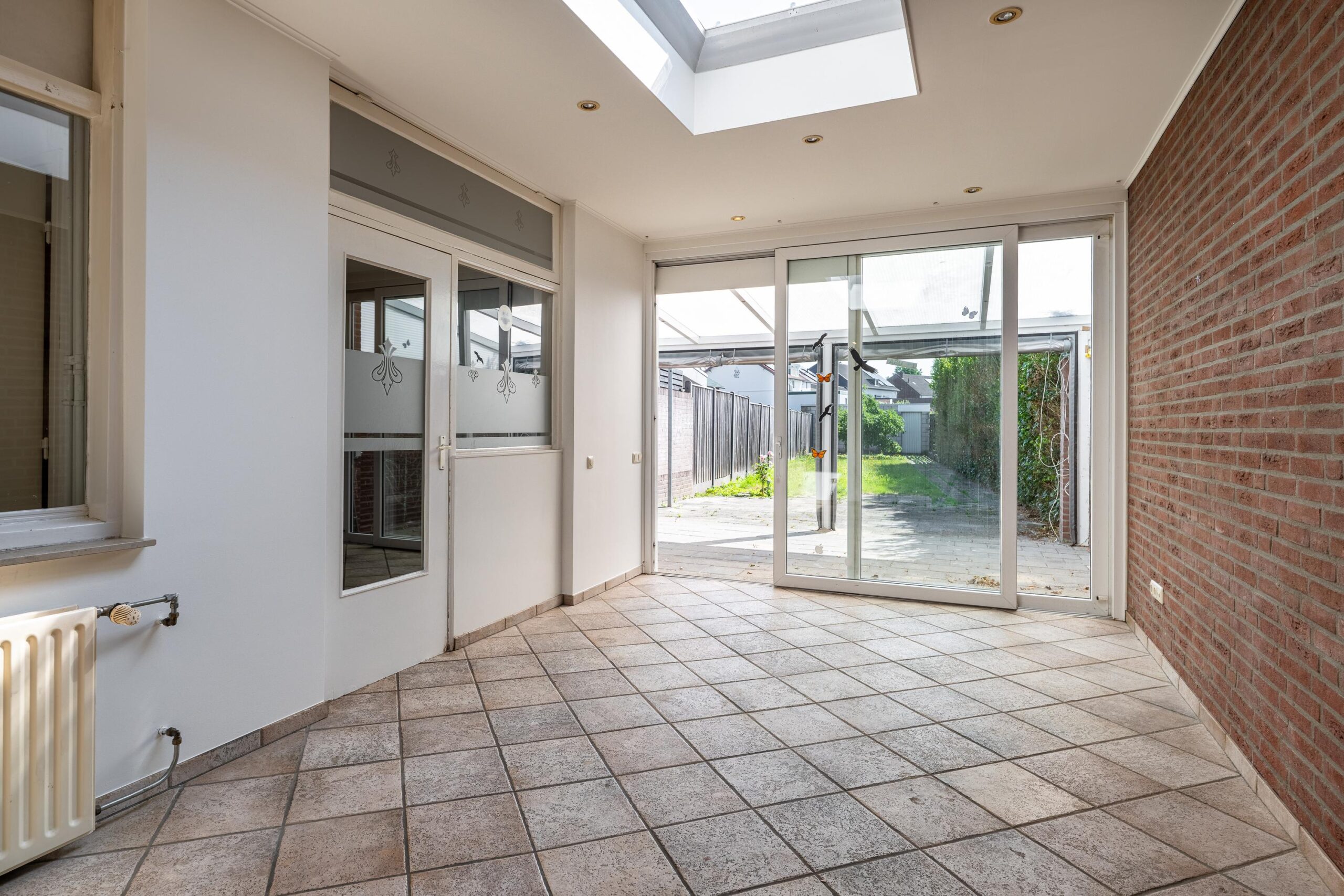 Aan de keuken grenst de royale aanbouw, momenteel in gebruik als eetgedeelte of wintertuin. Deze ruimte beschikt over een schuifpui naar de tuin, een lichtkoepel, verlaagd plafond met inbouwspots en veel daglicht. Vanuit de aanbouw is er toegang tot de praktische bijruimte met aansluitingen voor wasmachine en droger.