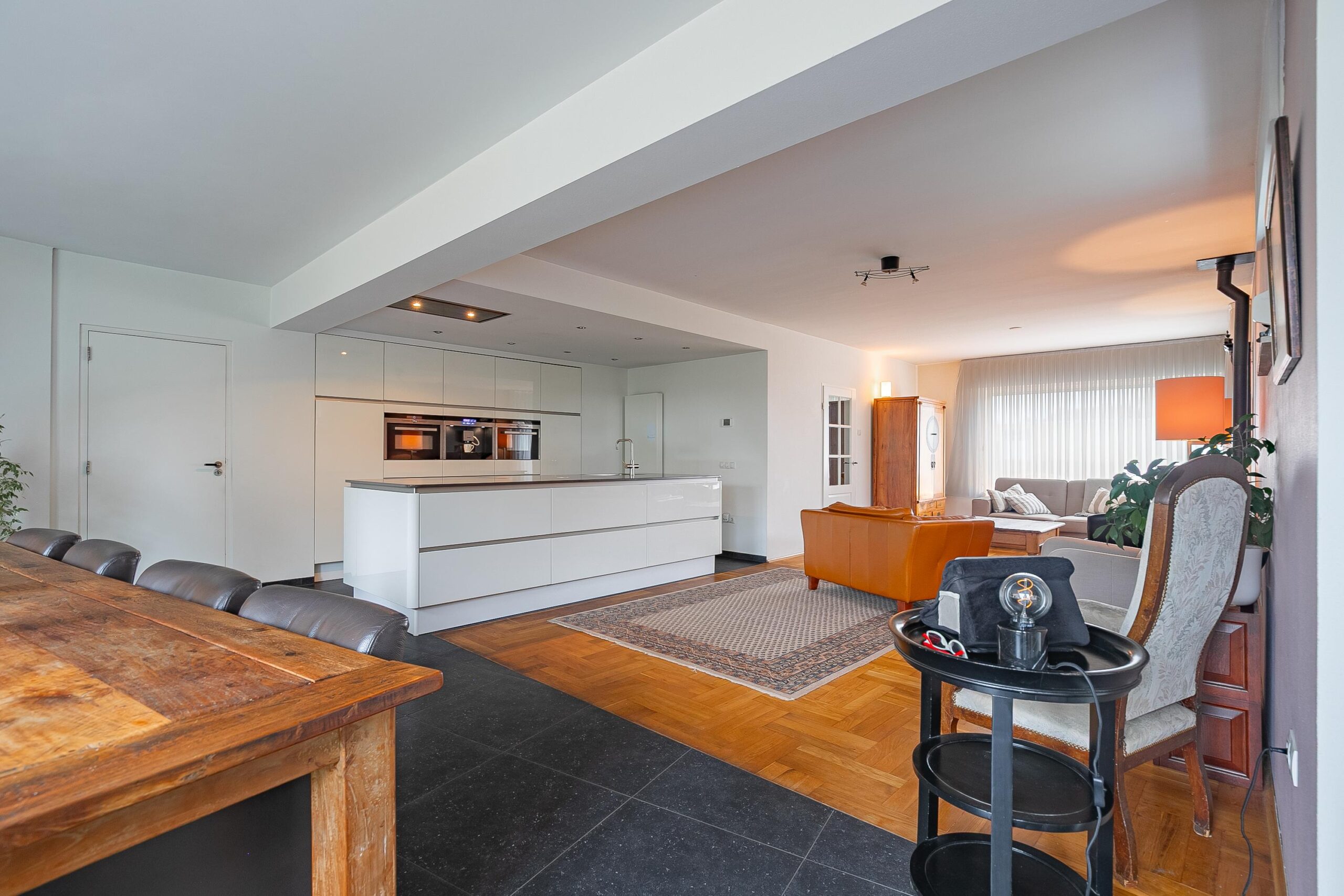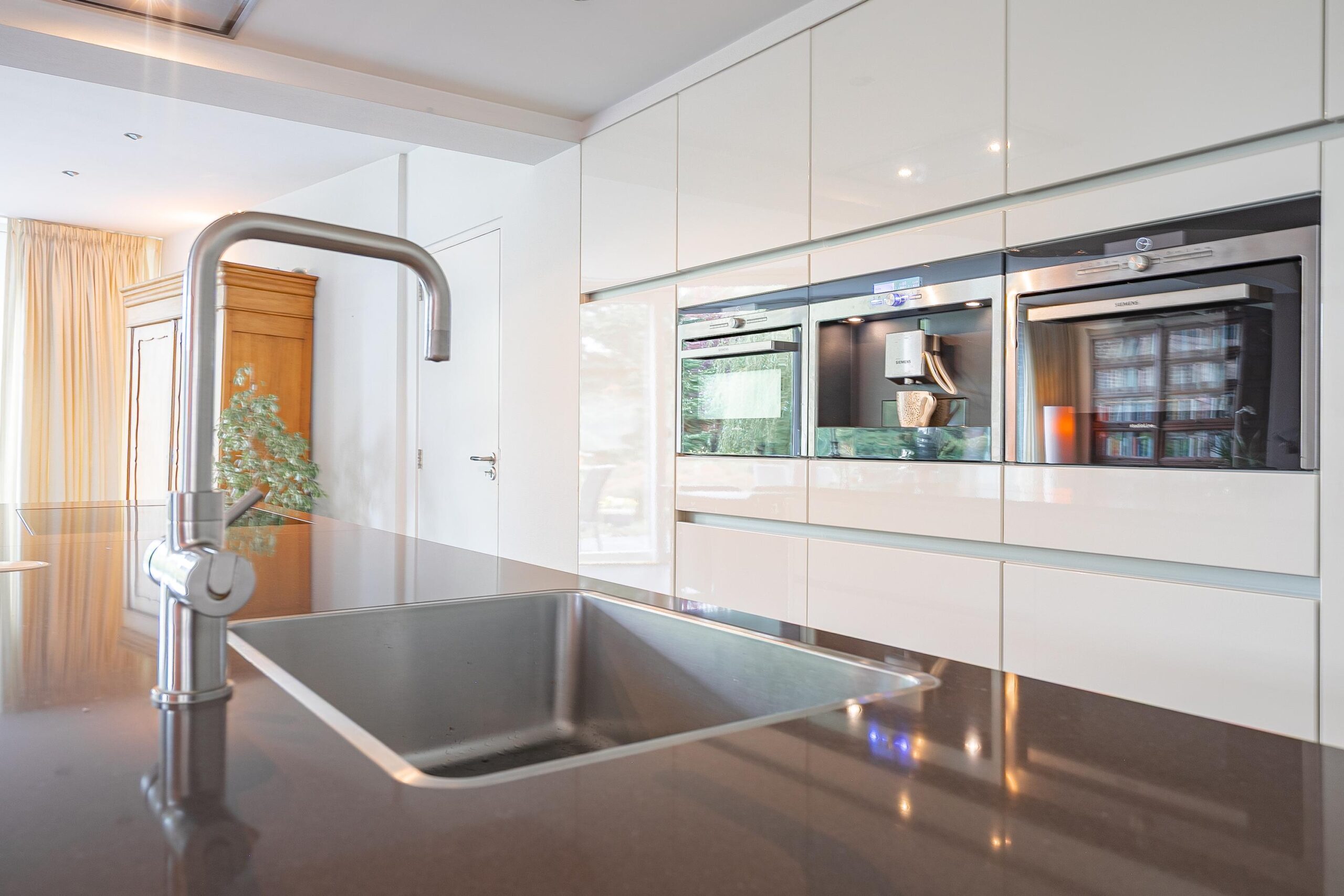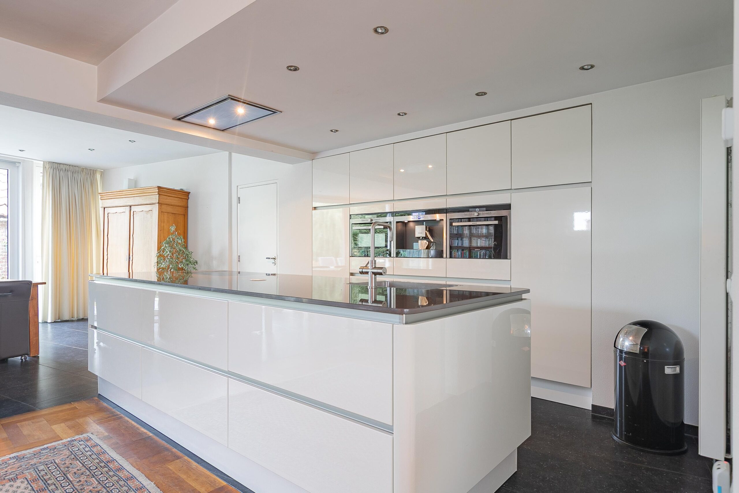inductiekookplaat, ingebouwde afzuigkap, vaatwasser, oven, stoomoven, koffieapparaat, grote koelkast en