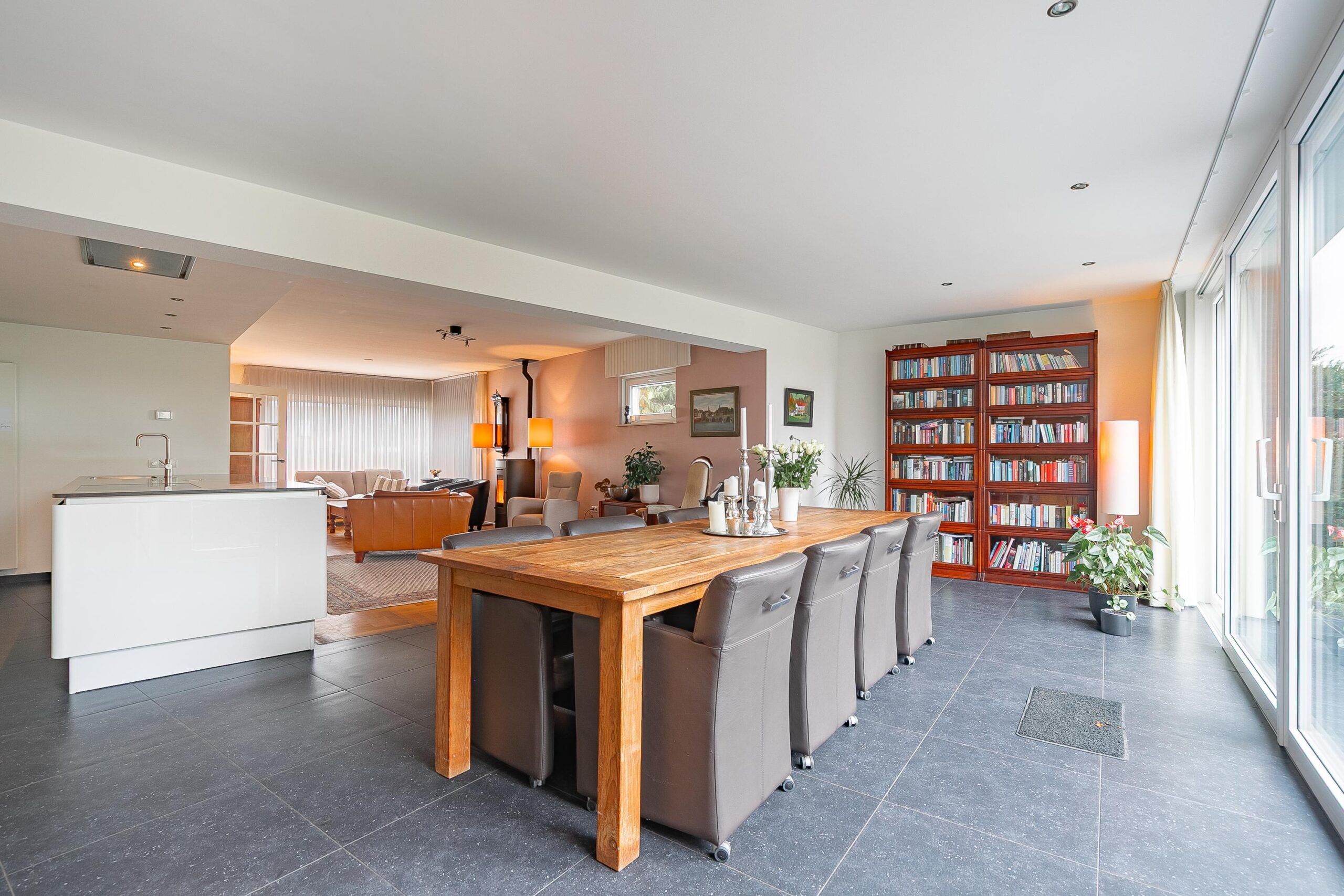 Prachtige sfeervolle woonkamer met ruime aanbouw.