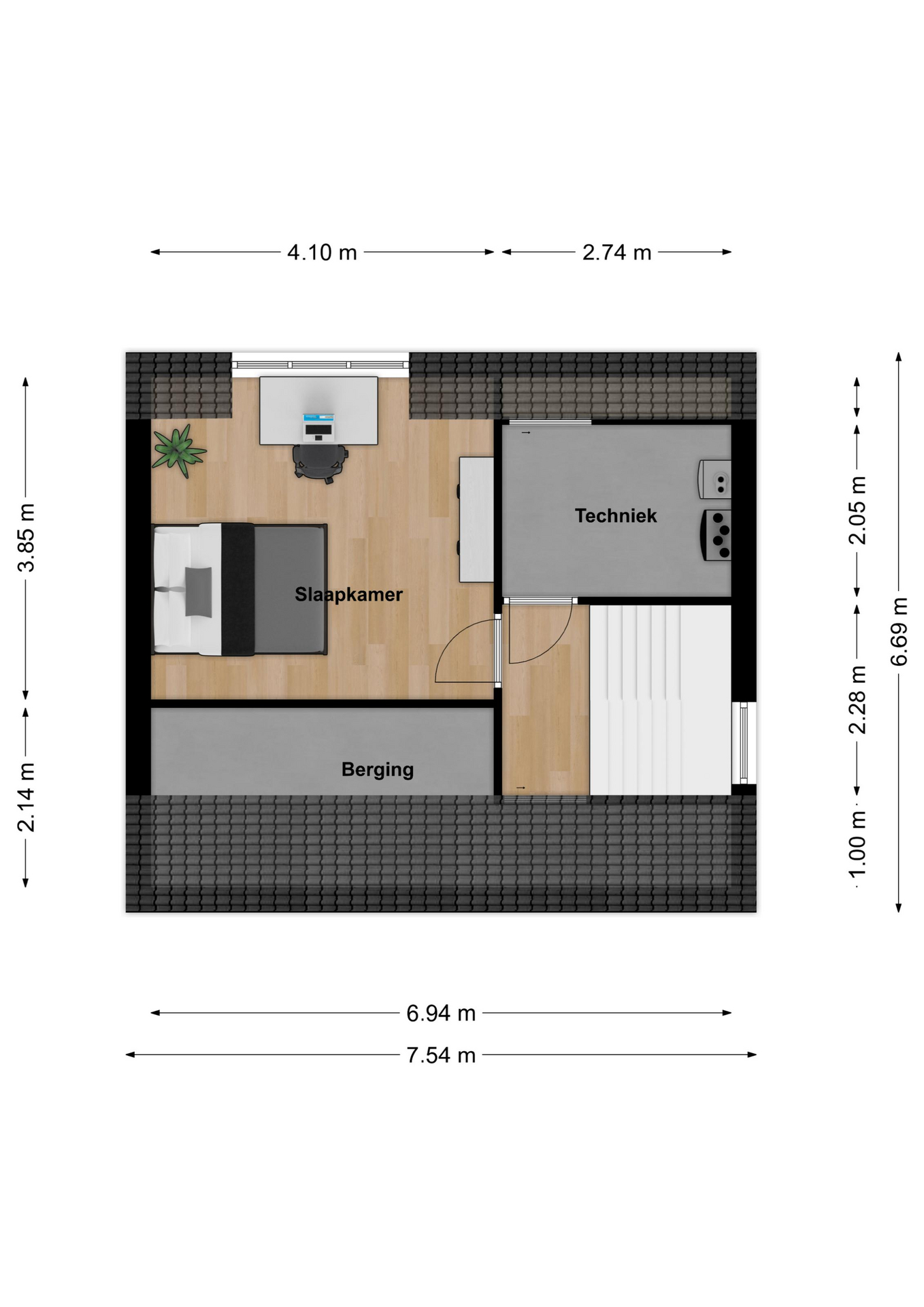 4e Slaapkamer c.q. hobbyruime met opbergschotten en een dakkapel.