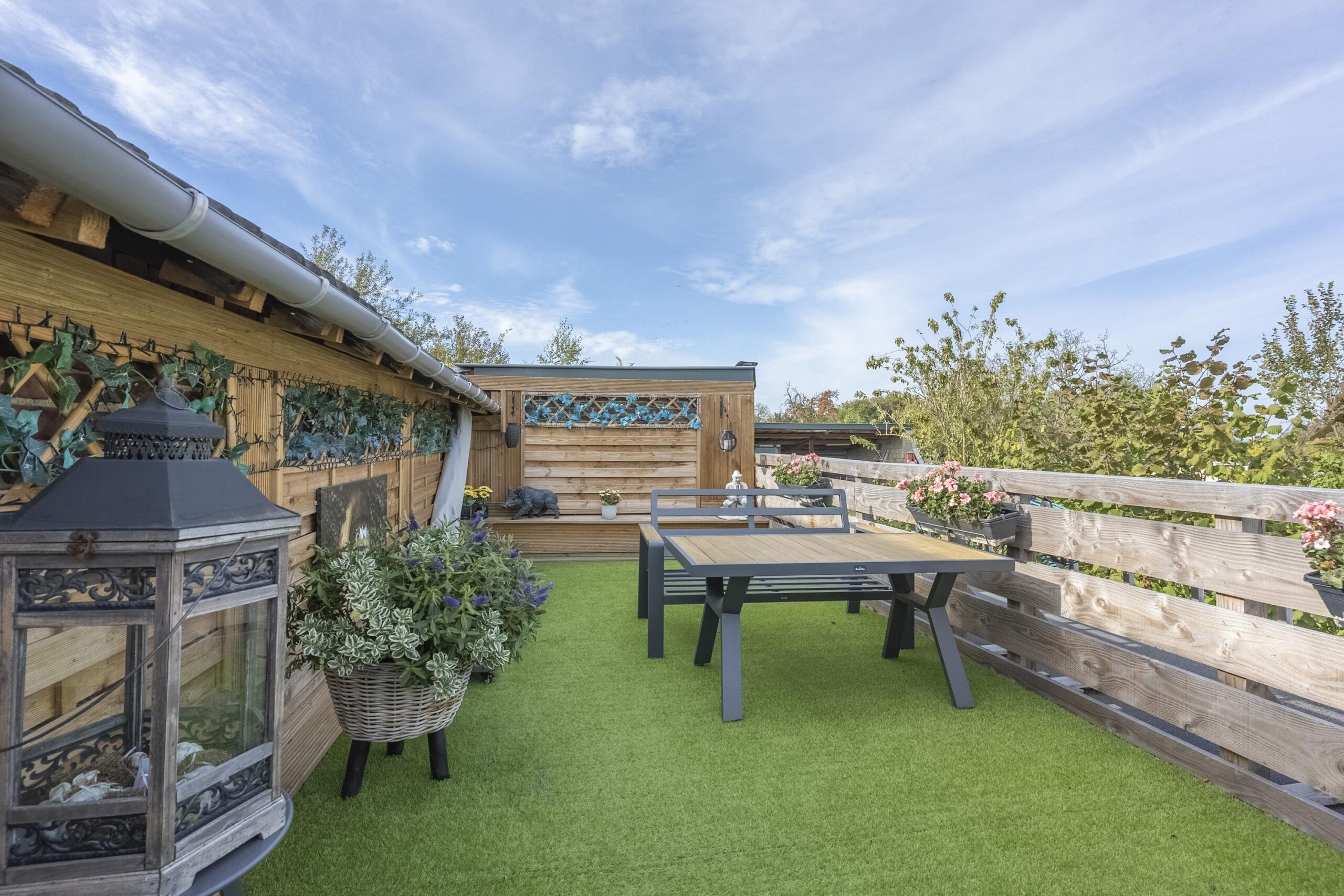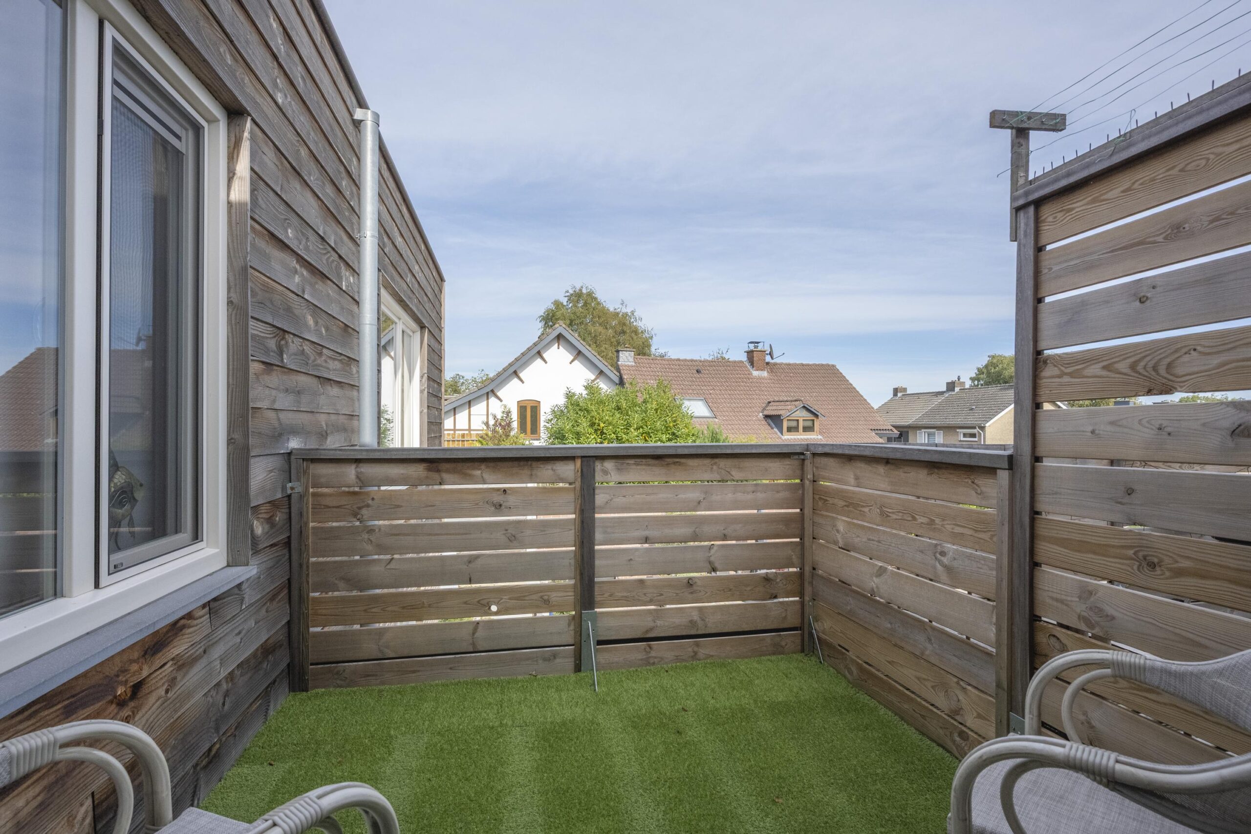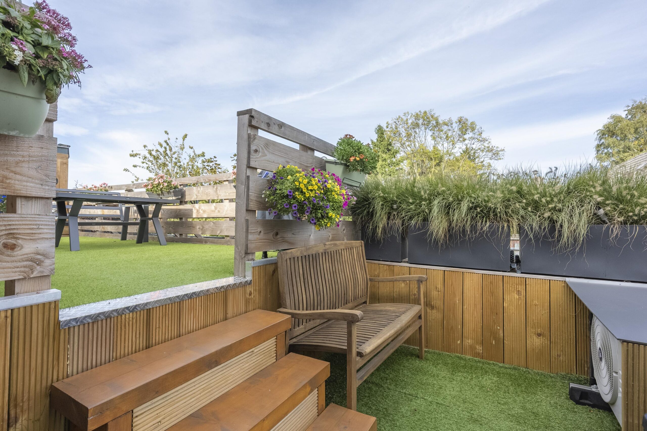 Het dakterras is zeer goed afgewerkt en voorzien van een kunstgrastapijt. Door de schuttingen is er optimale privacy gecreëerd.