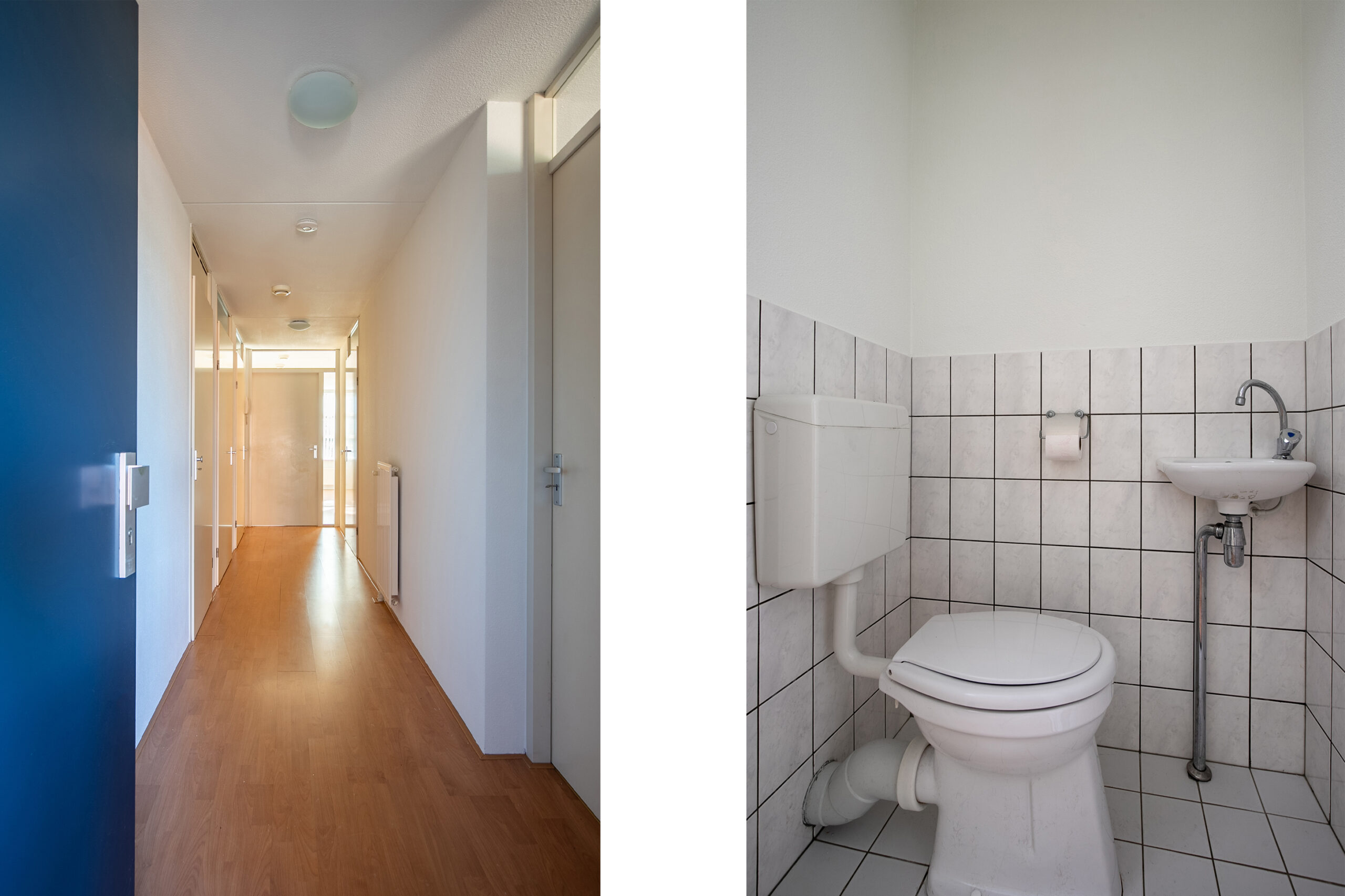 Via de lift bereikt u de derde verdieping, waar dit appartement is gelegen. Bij het betreden van het appartement komt u binnen in de hal met meterkast en intercominstallatie. De hal geeft toegang tot de eerste slaapkamer, de meterkast, de wasruimte, badkamer en het aparte toilet.