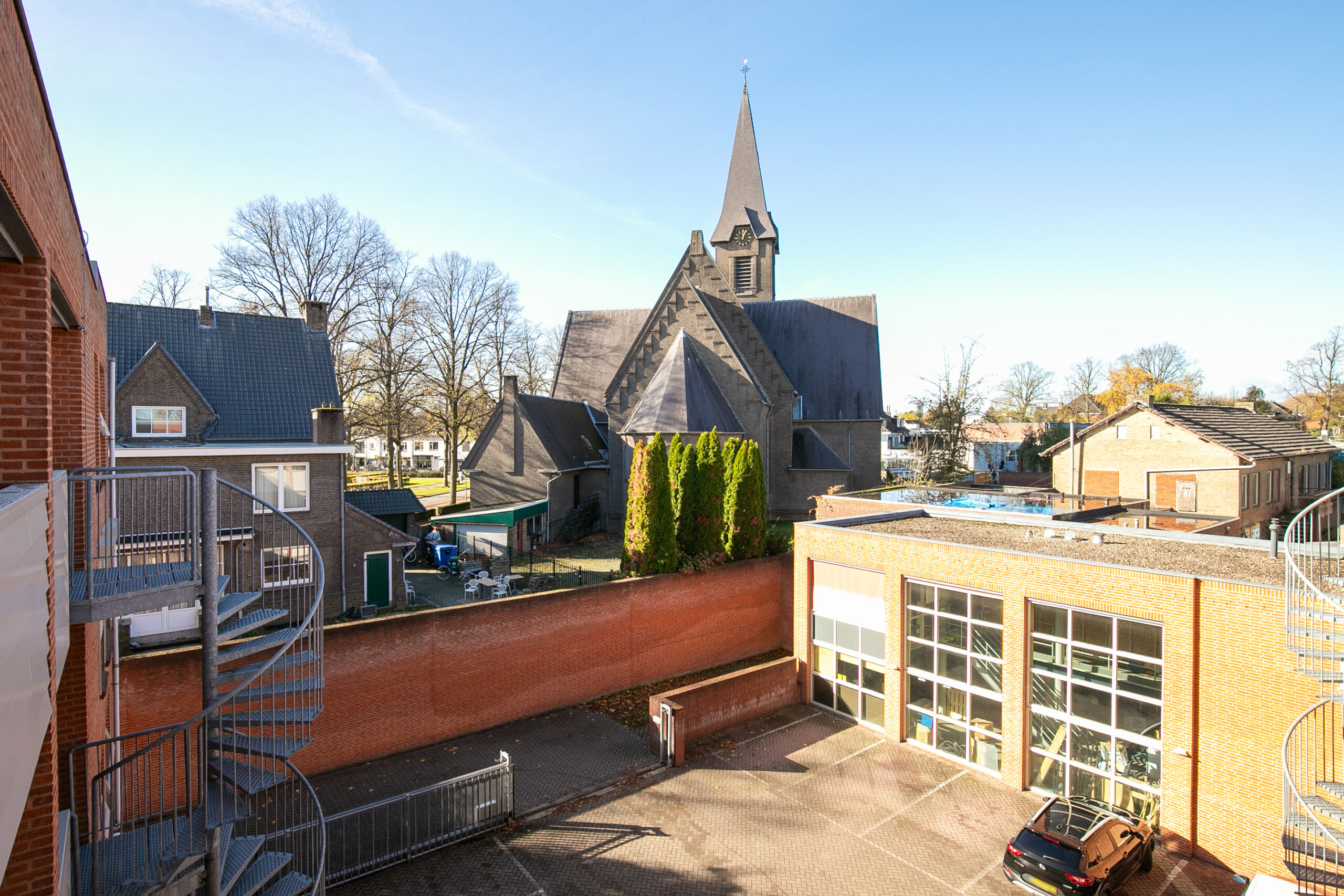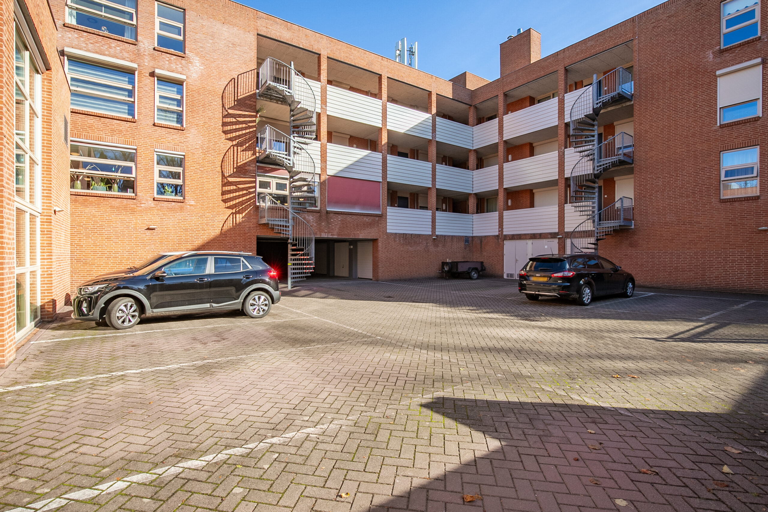Aan de achterzijde van het complex is een afgesloten parkeerterrein met toegangspoort aanwezig. Hier bevind zich de eigen parkeerplaats.