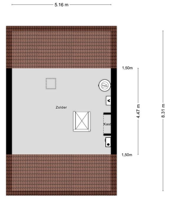 De zolder is bereikbaar middels een vlizotrap. De mogelijkheid bestaat om een vaste trap naar de zolder te realiseren zodat hier een vierde slaapkamer ontstaat. De nokhoogte bedraagt ca. 2.90m waardoor dit een ideale slaapkamer zou kunnen zijn. Hier is tevens de technische ruimte met opstelling van de HR combi cv-installatie (Intergas, bouwjaar 2017 & eigendom).