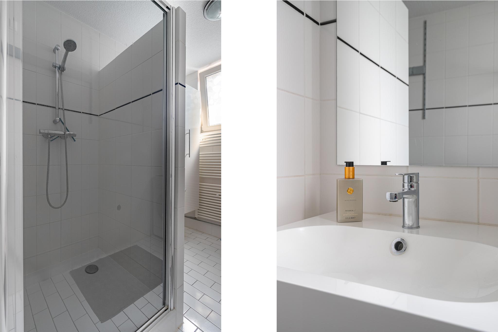 - Badkamervoorzieningen Douche, wastafel, wasmachineaansluiting