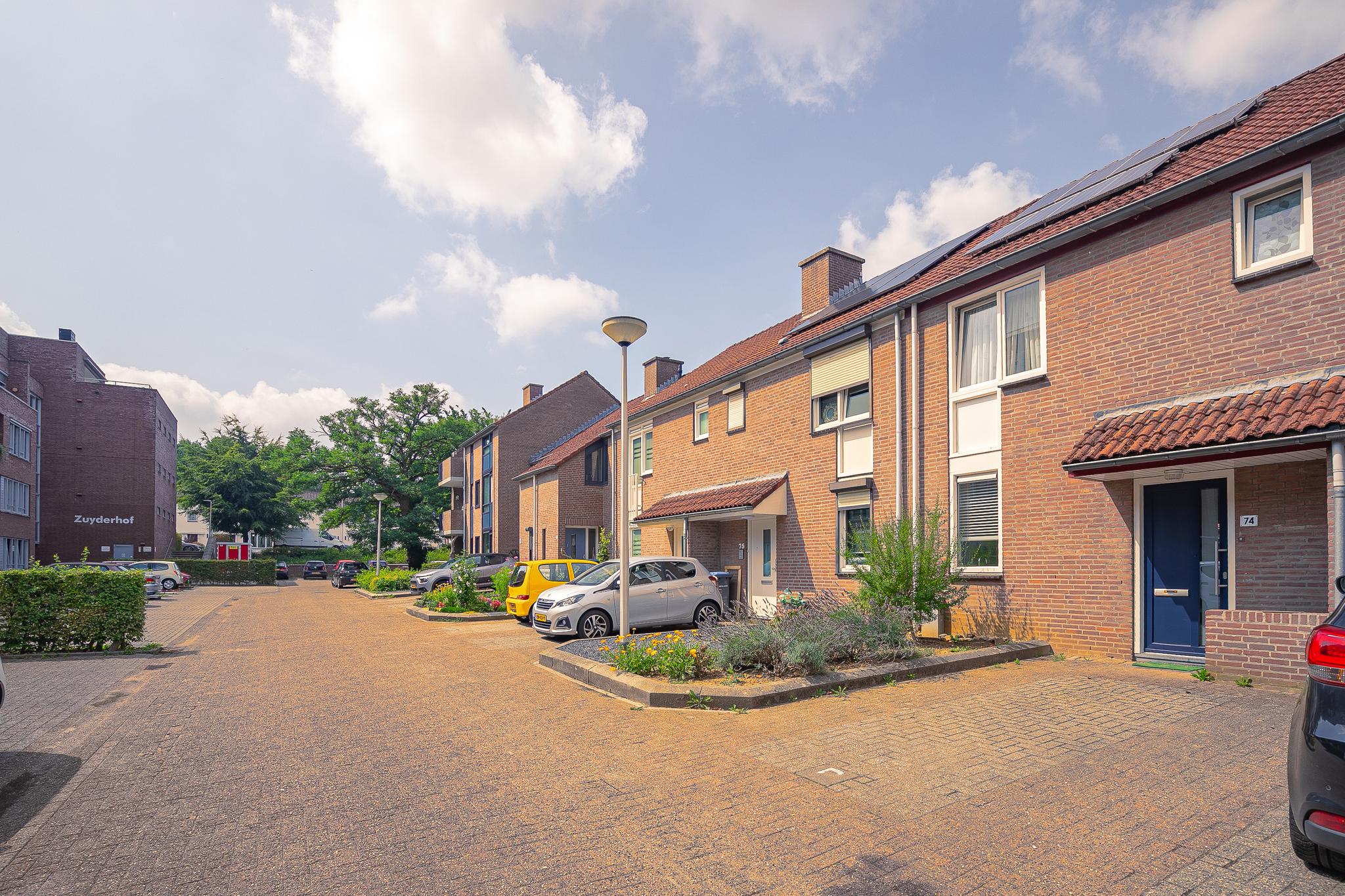 Voortuin met ruime oprit voor het plaatsen van een auto en entree naar de woning.