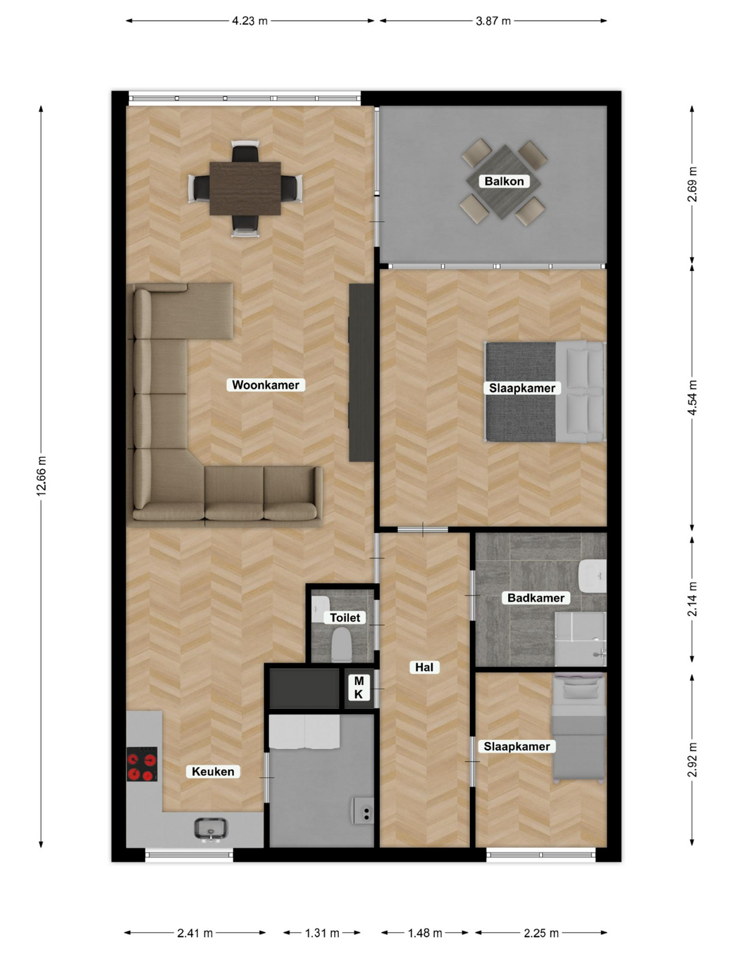 - Aantal kamers 3 kamers