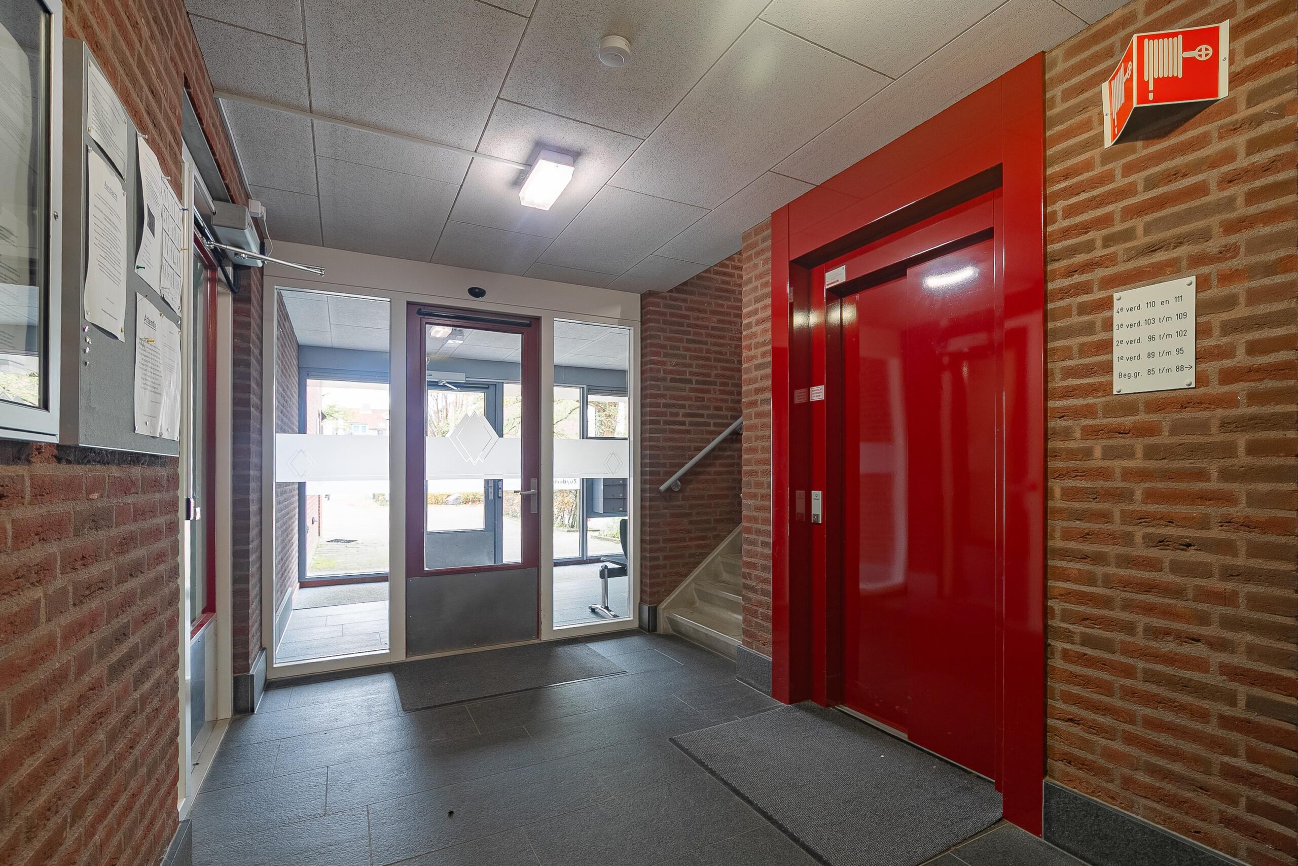 Gezamenlijke entree met bellenplateau en brievenbussen.