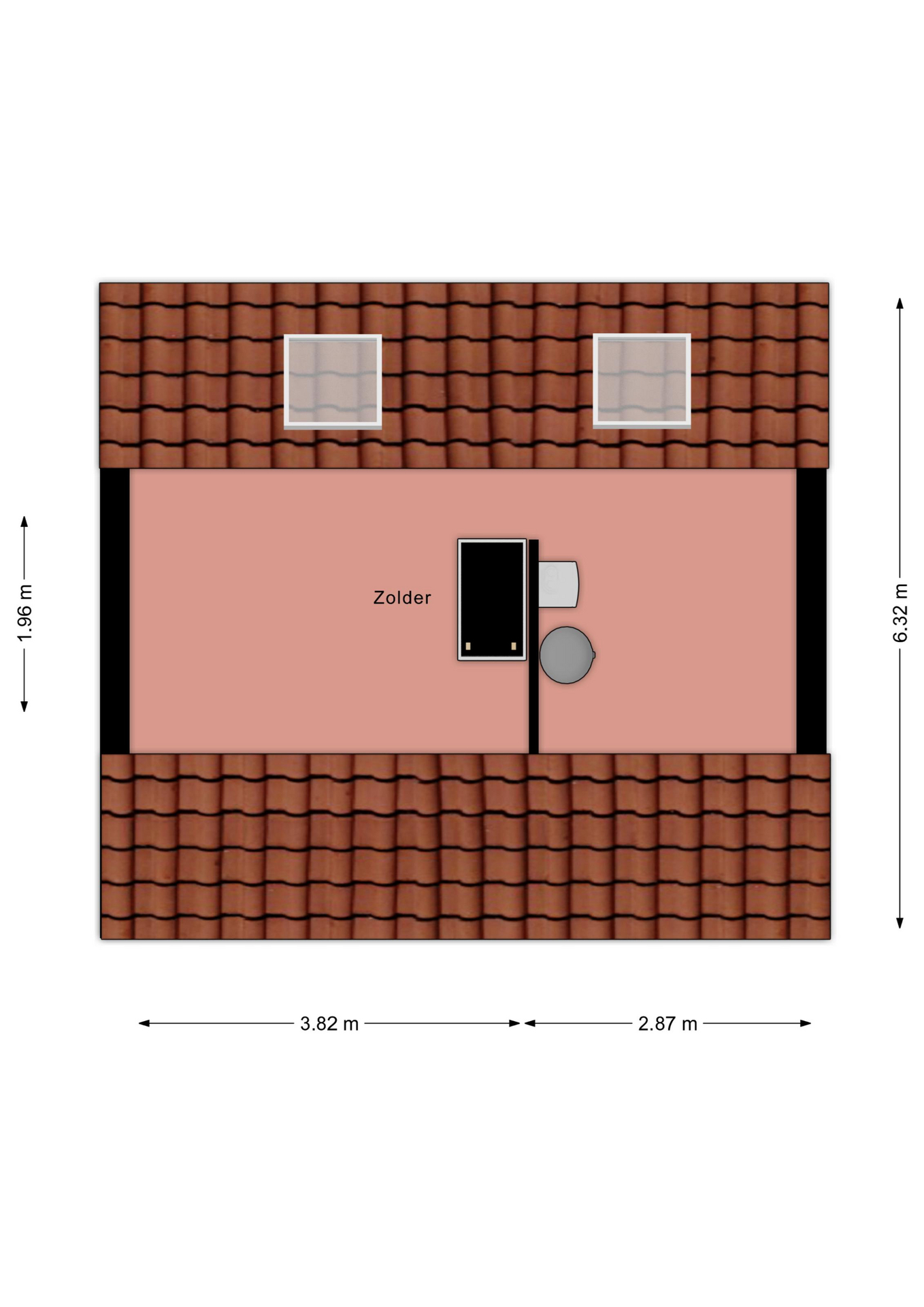 Praktische bergzolder te betreden middels een vlizotrap en stahoogte van ca. 2m. Hier bevindt zich momenteel de cv-installatie (Remeha Calenta, in eigendom) en de zonneboiler (Aquasol 3).