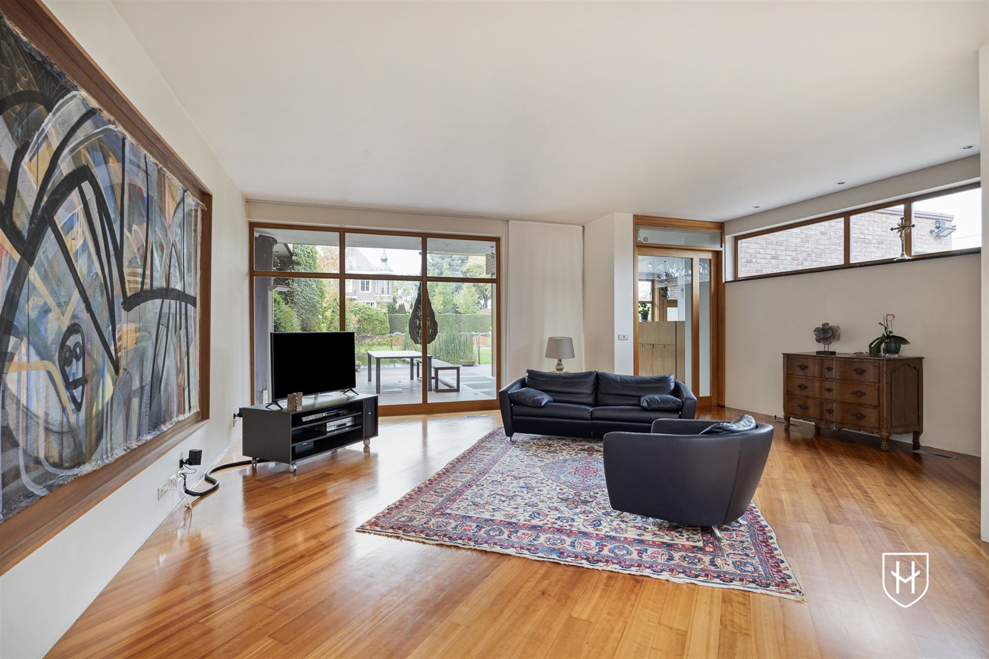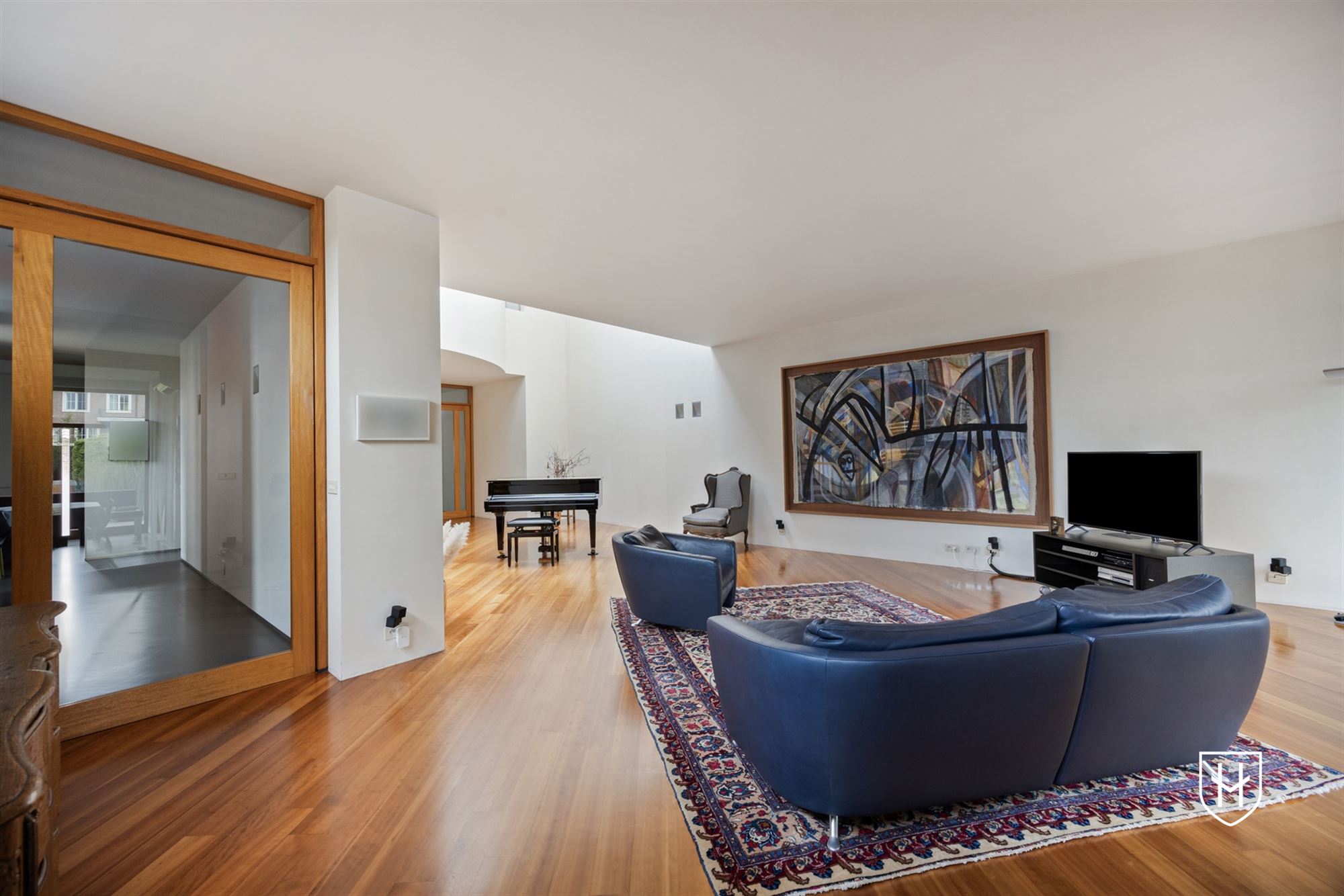 Riante leefruimte met impressionante open vide, fraai kerselaar parket, schitterend tuincontact en meerdere sfeervolle zitgelegenheden met een bijzonder lichtrijk karakter