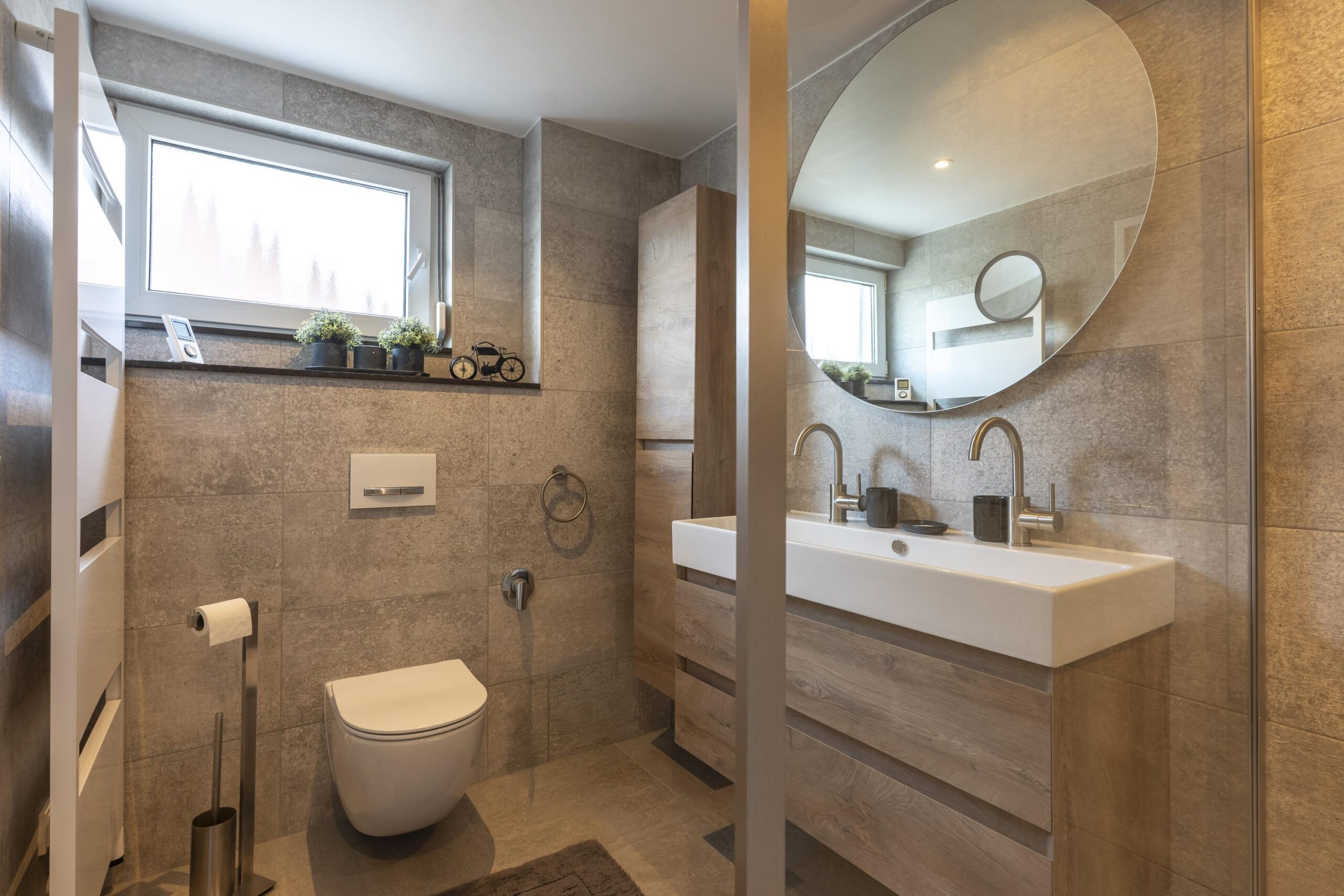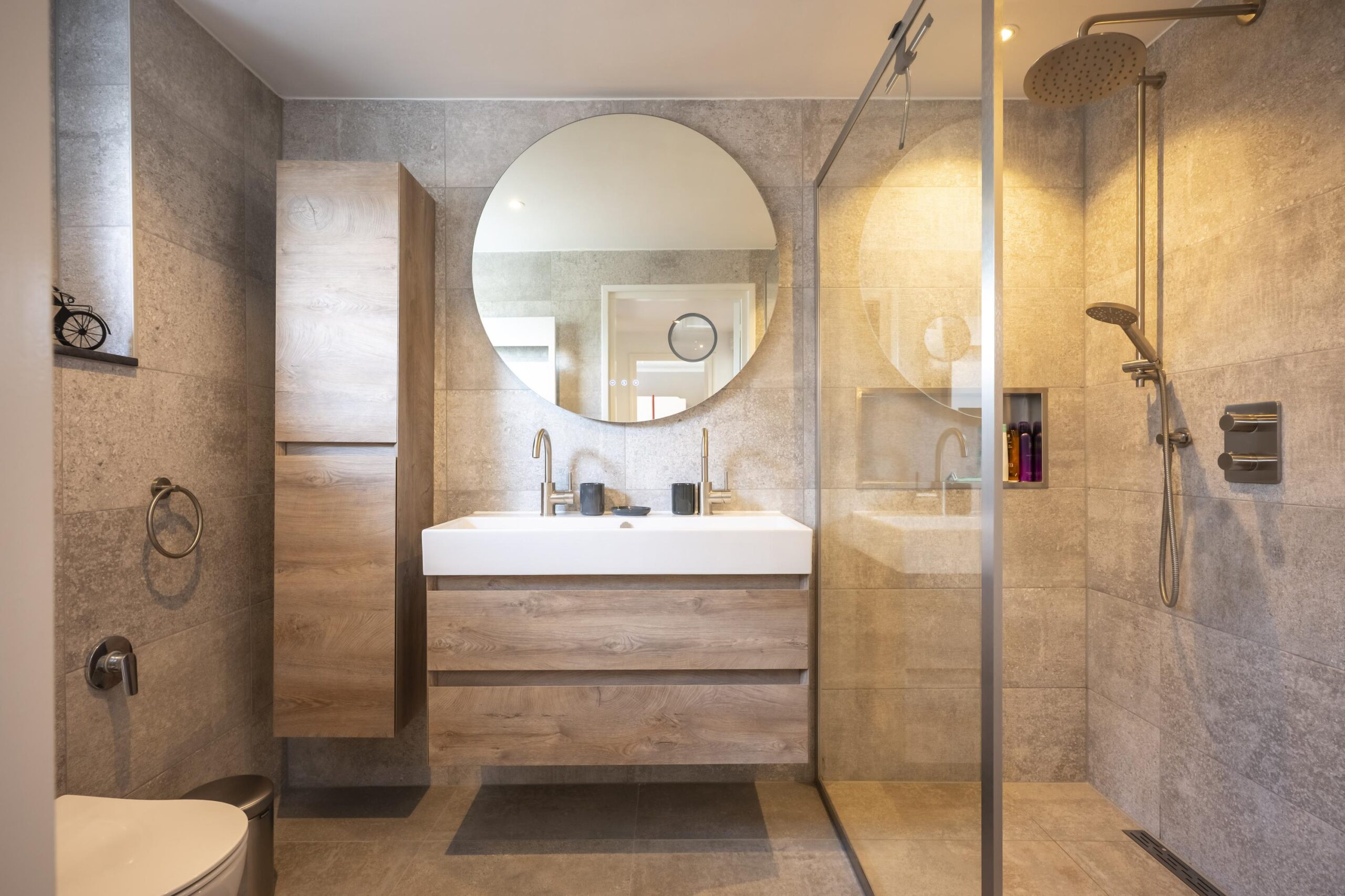 - Badkamervoorzieningen Toilet, dubbele wastafel, wastafelmeubel, inloopdouche