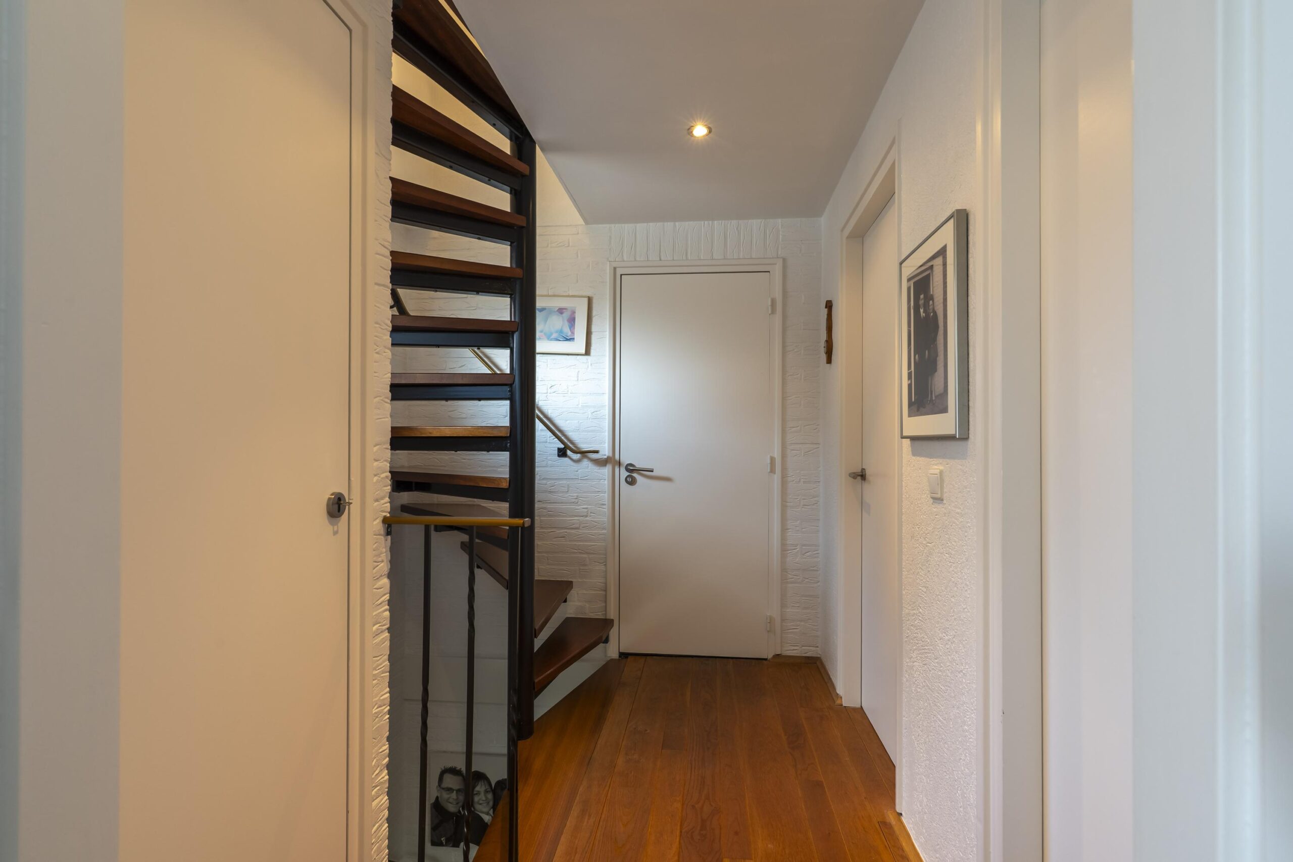 Overloop met airconditioning en toegang tot drie goed afgewerkte slaapkamers, allen voorzien van doorlopende massieve parketvloeren. De slaapkamers beschikken over een strakke plafondafwerking; de grootste slaapkamer is bovendien voorzien van ingebouwde verlichting.