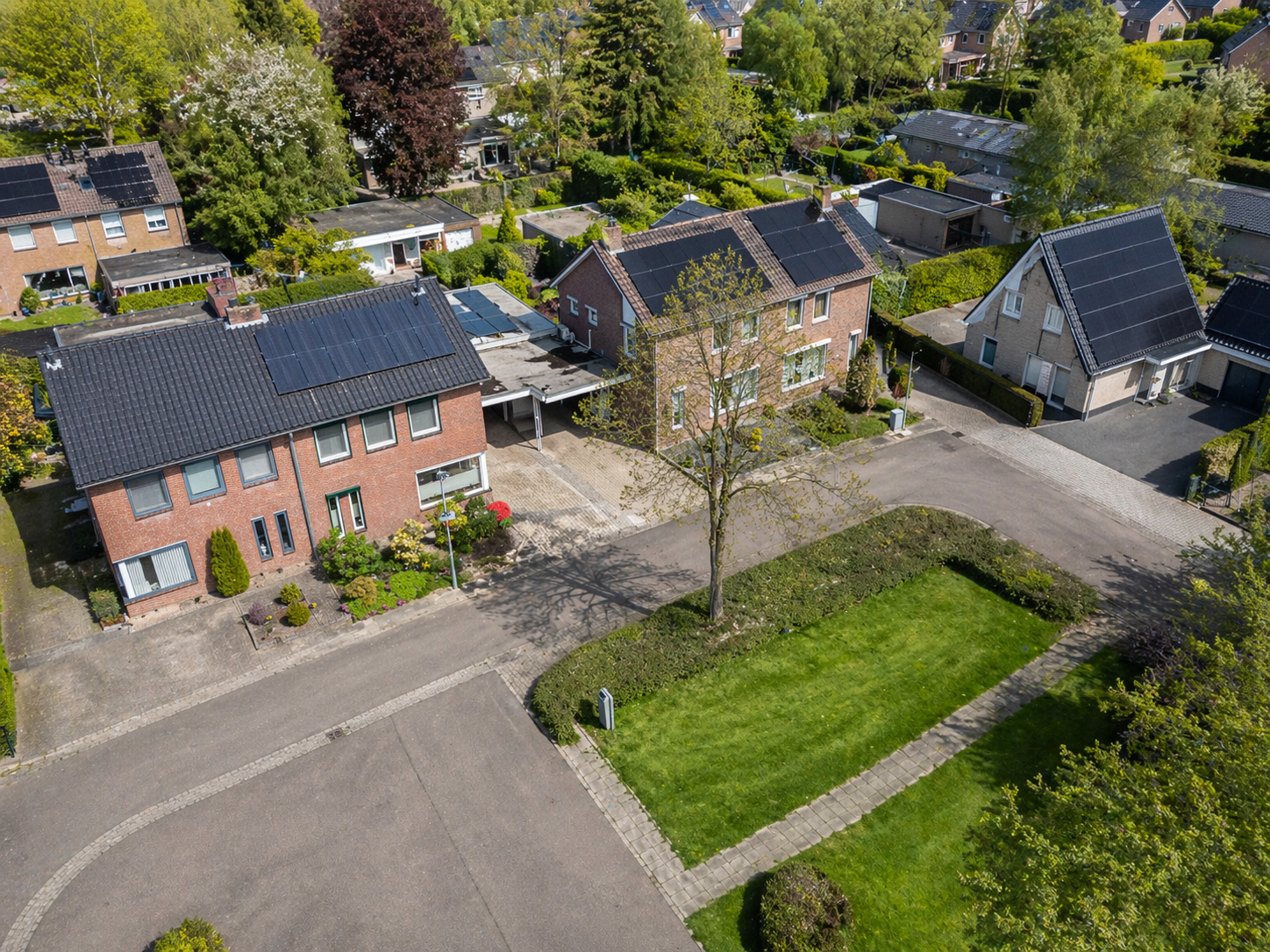 Zeer rustig, aan een verkeersluwe en doodlopende straat en direct aan een park gelegen, uitstekend onderhouden halfvrijstaand woonhuis met onderhoudsarme voortuin, ruime oprit, carport, garage, zolder en zonnige tuin.