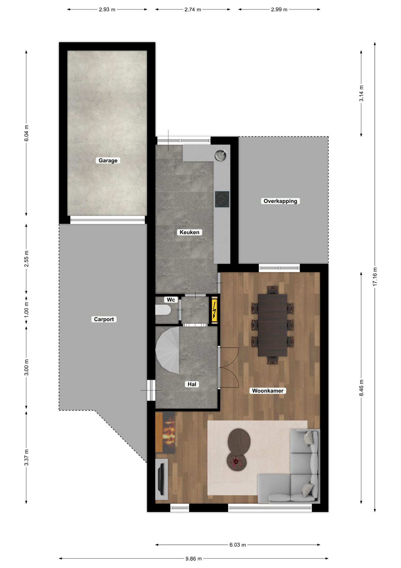Via de onderhoudsarme voortuin en ruime oprit bereikt u de carport, welke tevens dienstdoet als overdekte entree. Deze is voorzien van ingebouwde verlichting en een lichtkoepel.
