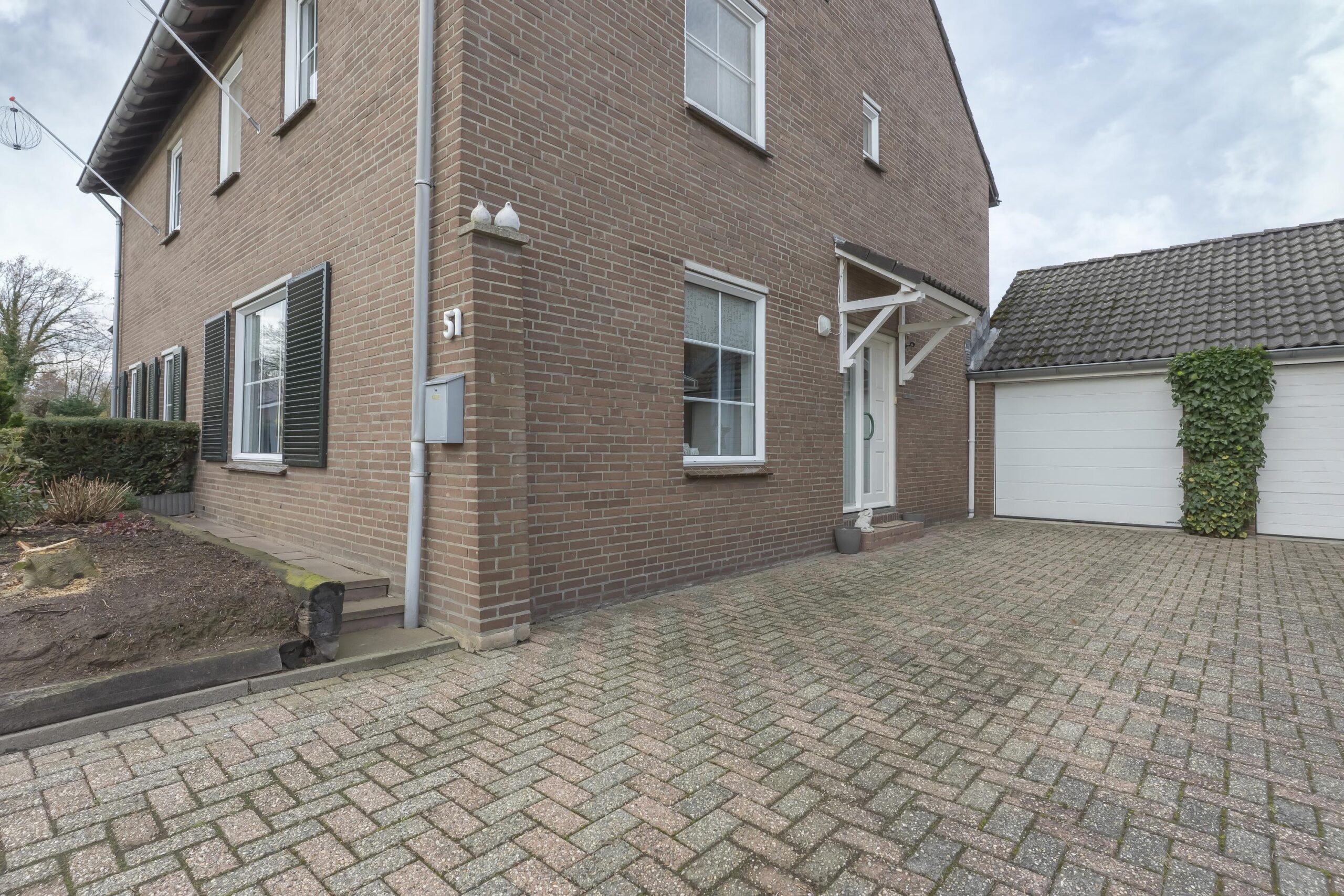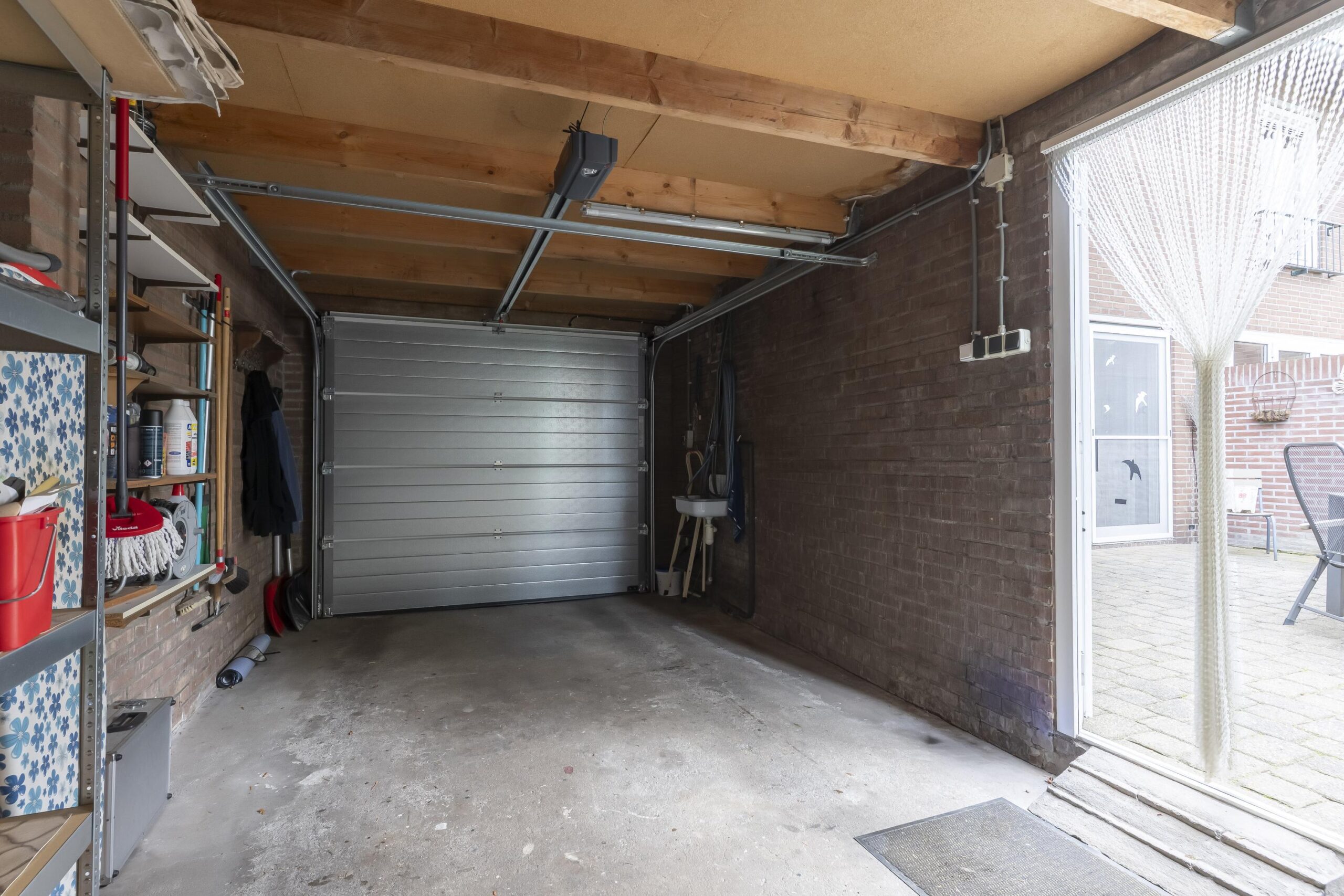 De naast het woonhuis gelegen garage is uitgerust met een elektrisch bedienbare sectionaal-poort, wateraansluiting en vliering.