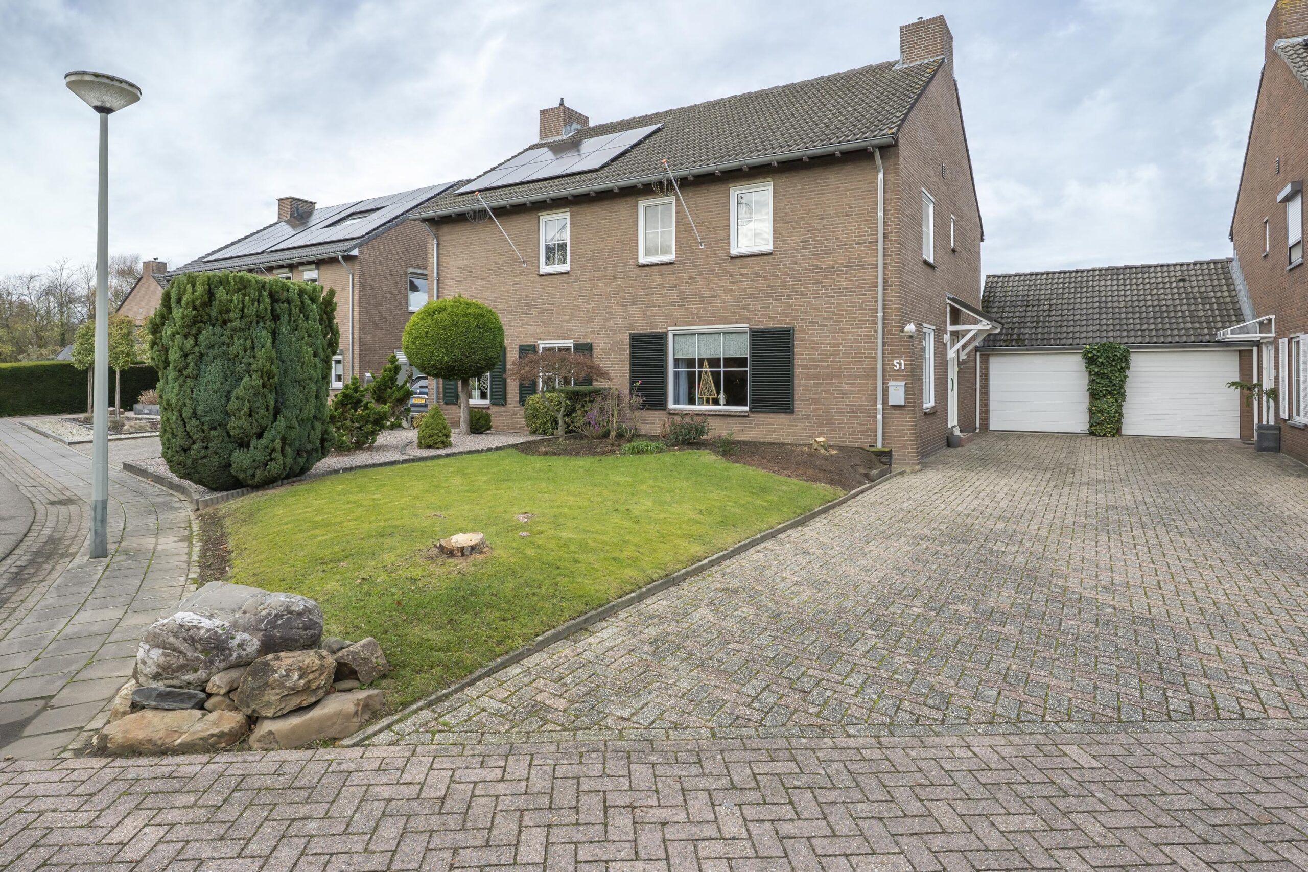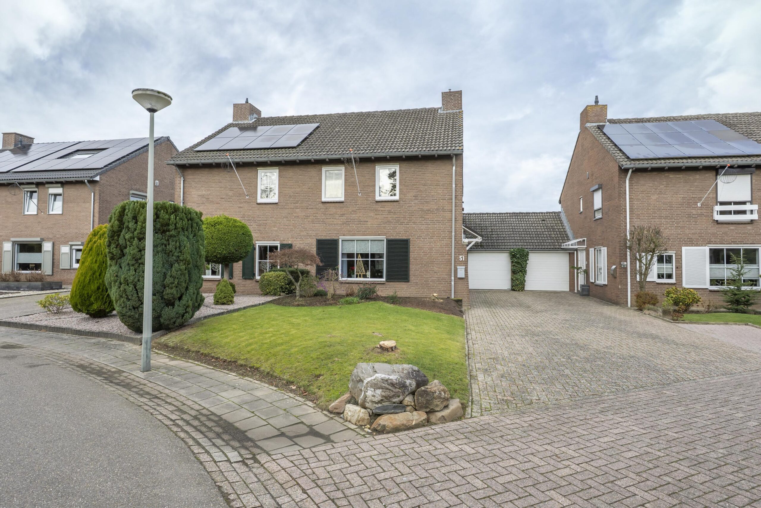In een rustig gelegen woonwijk, aan een verkeersluw woonerf en nabij het park, bevindt zich dit half vrijstaande woonhuis met zolder, tuin, berging en garage, gelegen aan het Jagerspad 51 te Landgraaf / Ubach over Worms.