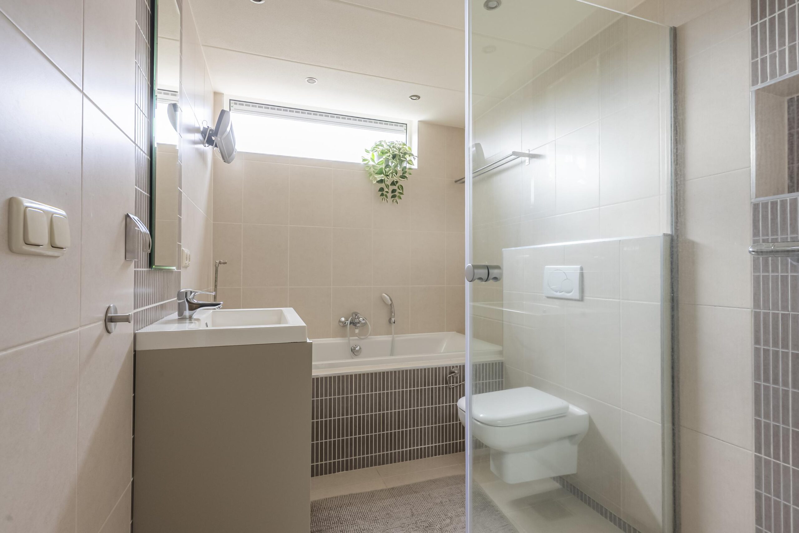 Eerste verdieping: overloop, vier slaapkamers waarvan één door de andere kamer bereikbaar is. De badkamer is modern en ingericht met een ligbad, separate douche, badmeubel en 2e toilet en middels een light-tube voorzien van extra daglicht.