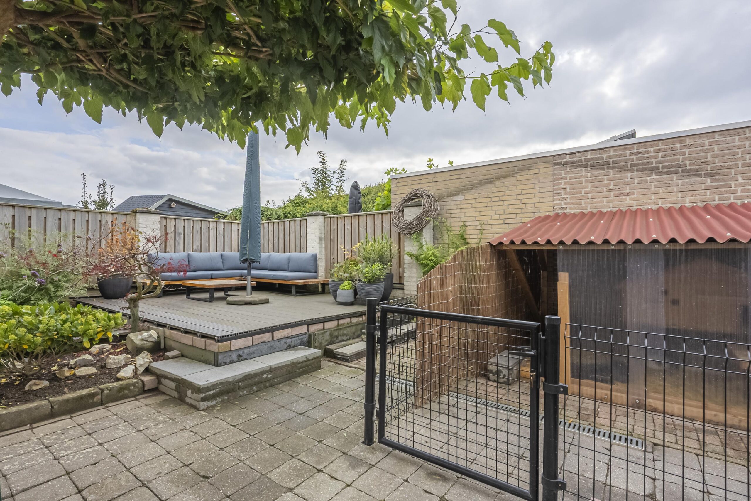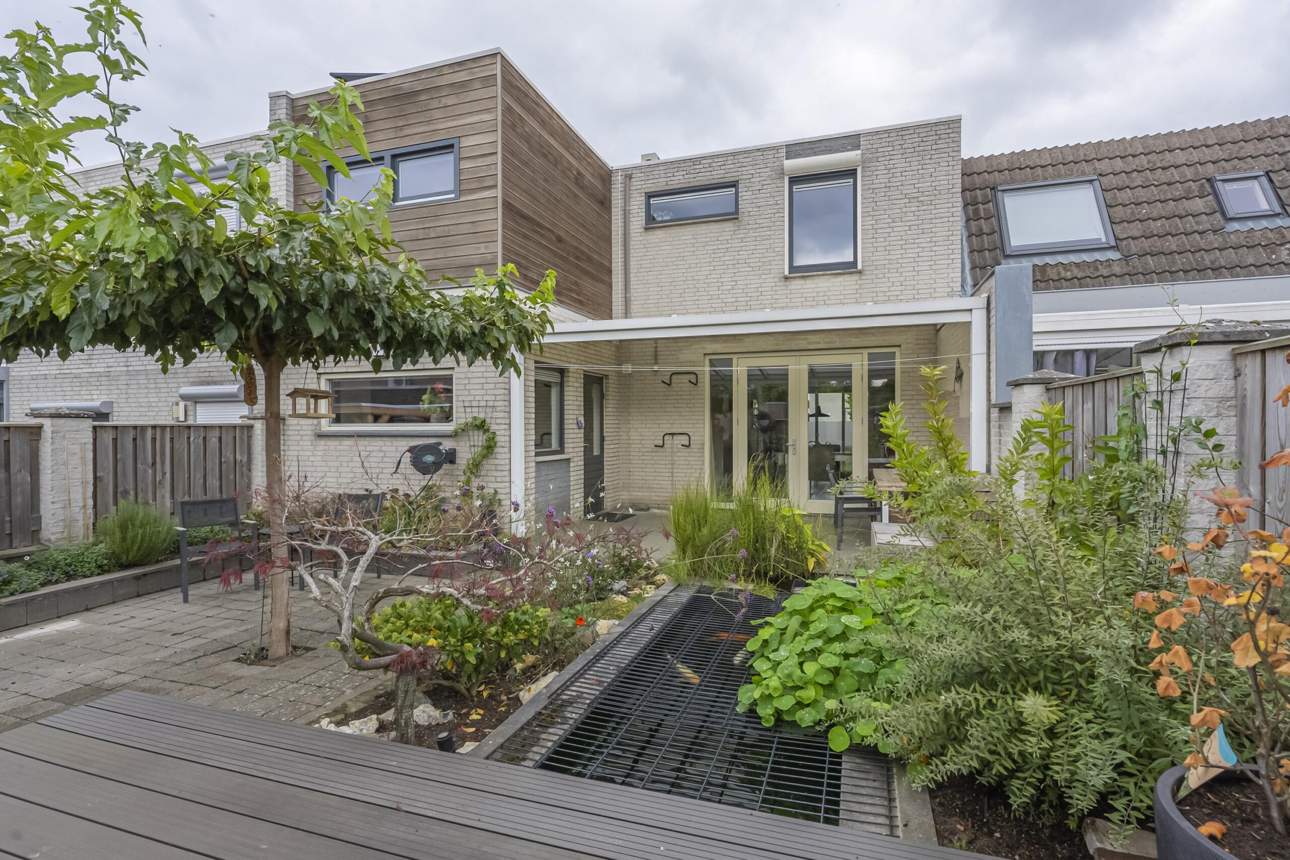 De geheel omsloten tuin is keurig verzorgd en aangelegd met een terras plus overkapping, vijver en een vlonder en is gelegen op het Zuid-Westen; dus ideaal qua bezonning.