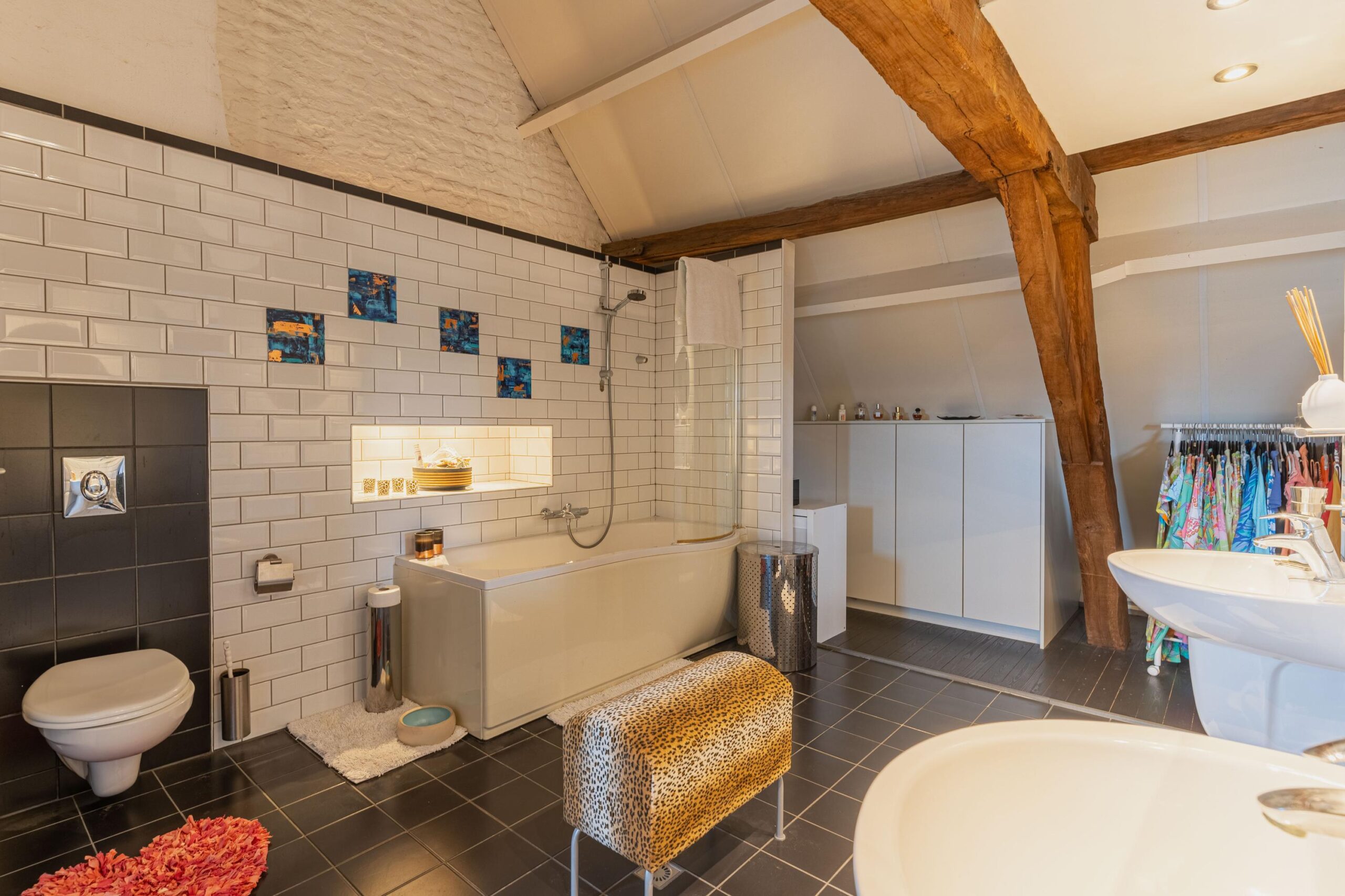 Zoals verwacht, voldoet ook de badkamer volledig aan de wensen van deze tijd. De ruimte is netjes betegeld in een neutrale kleurstelling en compleet ingericht met: een ligbad met douchewand, toilet en twee wastafels.