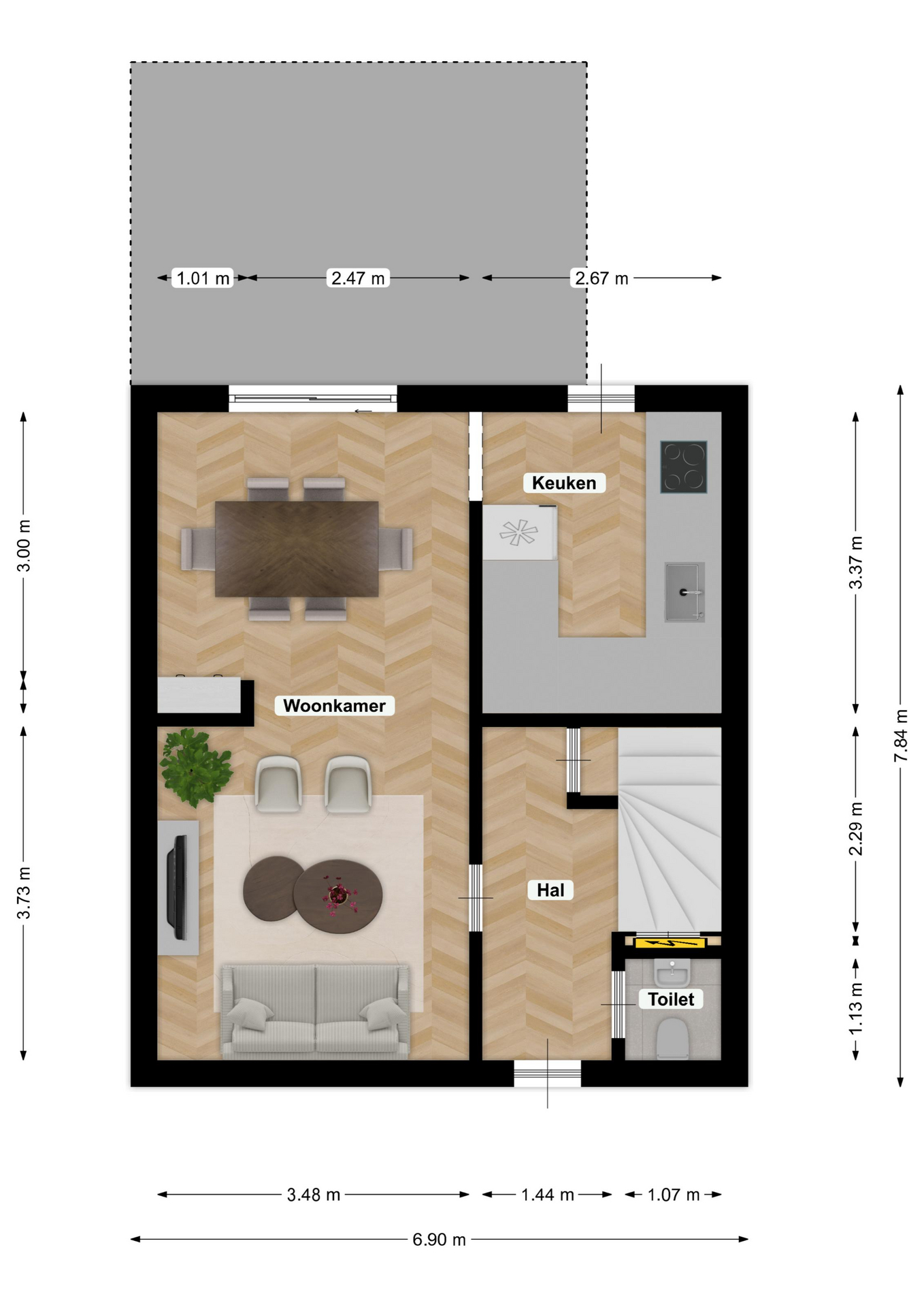 - Oppervlakte hoofdtuin ca. 99 m2