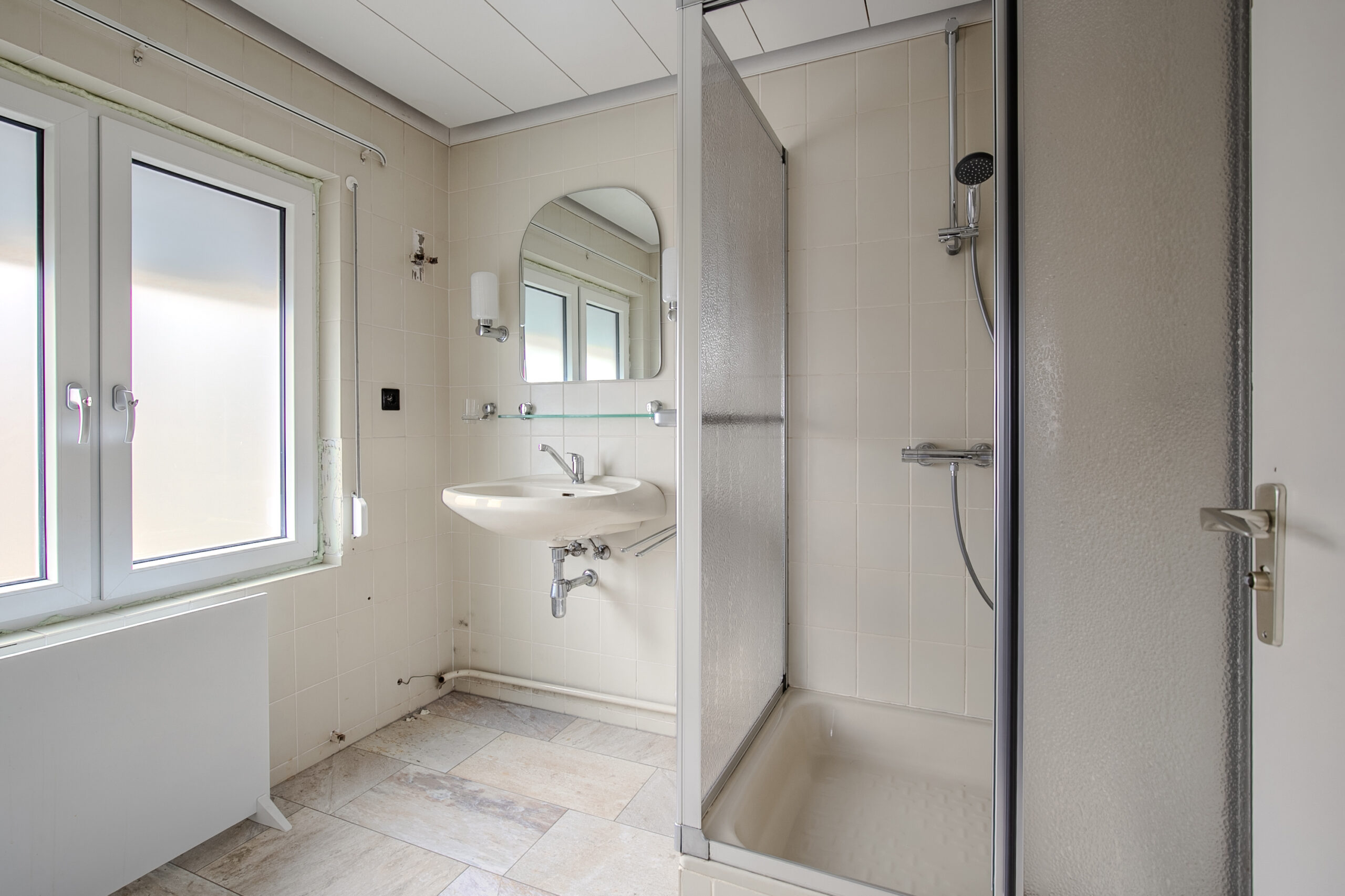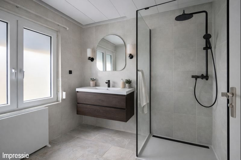 - Badkamervoorzieningen Douche, dubbele wastafel, wastafel