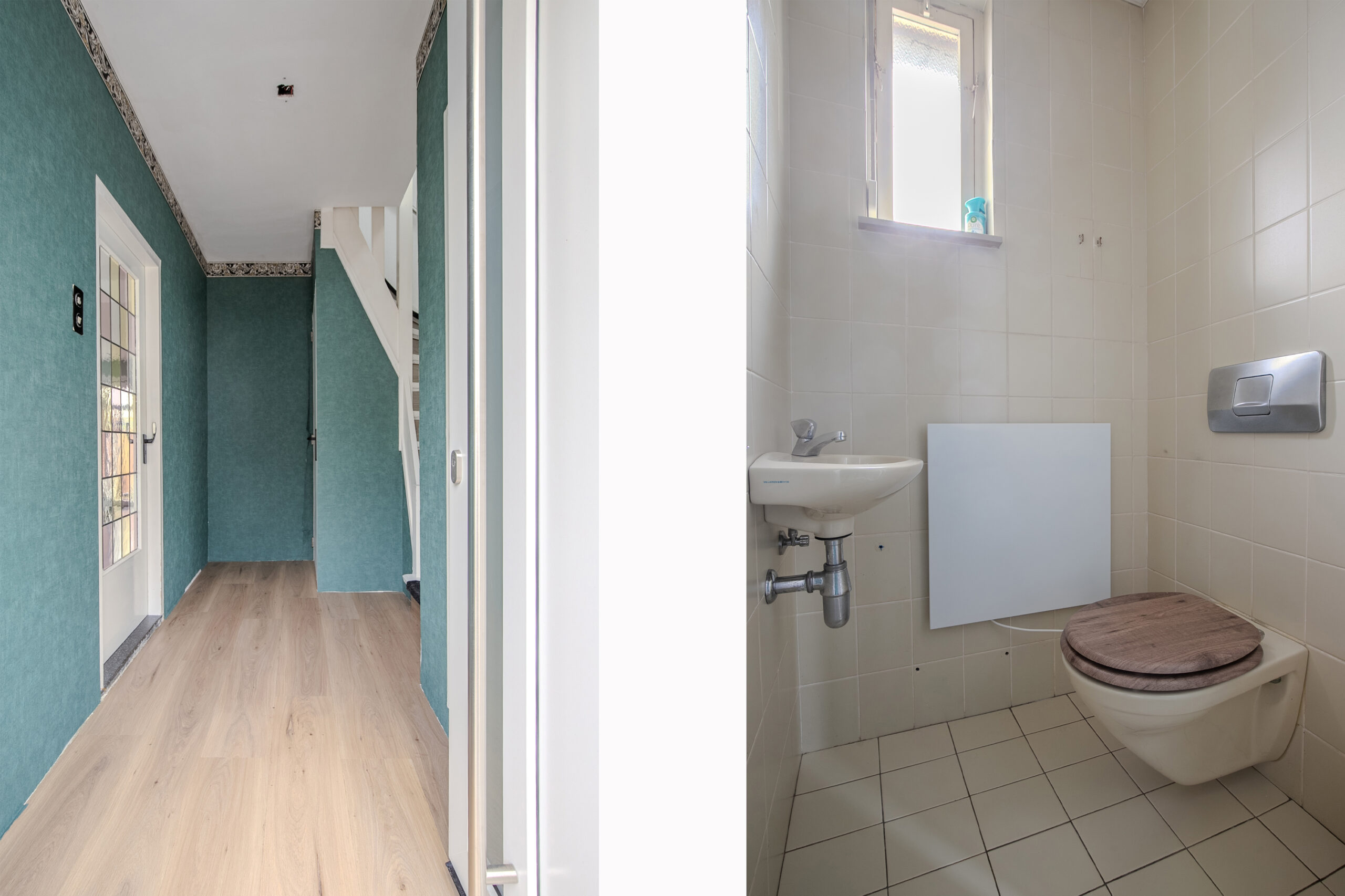Via de onderhoudsvriendelijke voortuin bereikt u de entree/hal. De hal biedt toegang tot de geheel betegelde toiletruimte, voorzien van fontein, zwevend closet en een raam ten behoeve van natuurlijke ventilatie. Daarnaast zijn vanuit de hal de meterkast, het souterrain en de woonkamer bereikbaar. Middels een authentieke glas-in-lood deur betreedt u de sfeervolle doorzonwoonkamer. Deze ruimte beschikt over een praktische inbouwkast en airconditioning (Chigo, eigendom, 2022), wat zorgt voor extra comfort in zowel zomer als winter. Vanuit de woonkamer heeft u toegang tot de halfopen, moderne keuken, welke is uitgerust met hoogwaardige AEG inbouwapparatuur, te weten: een inductiekookplaat met geïntegreerde afzuiging, combimagnetron, koelvriescombinatie en vaatwasser.