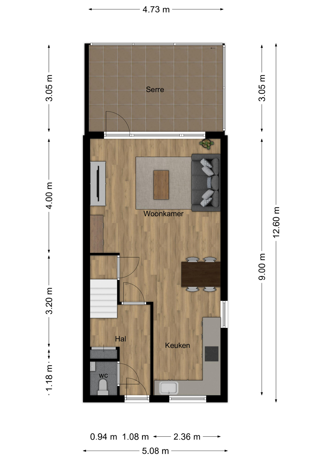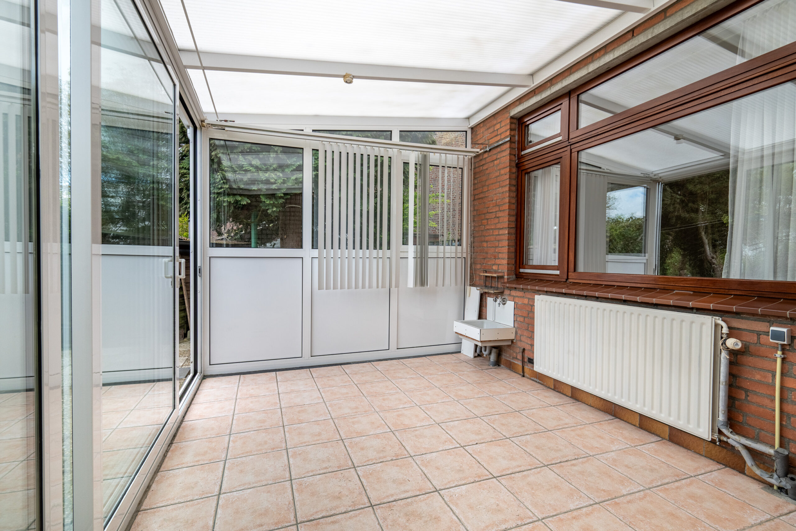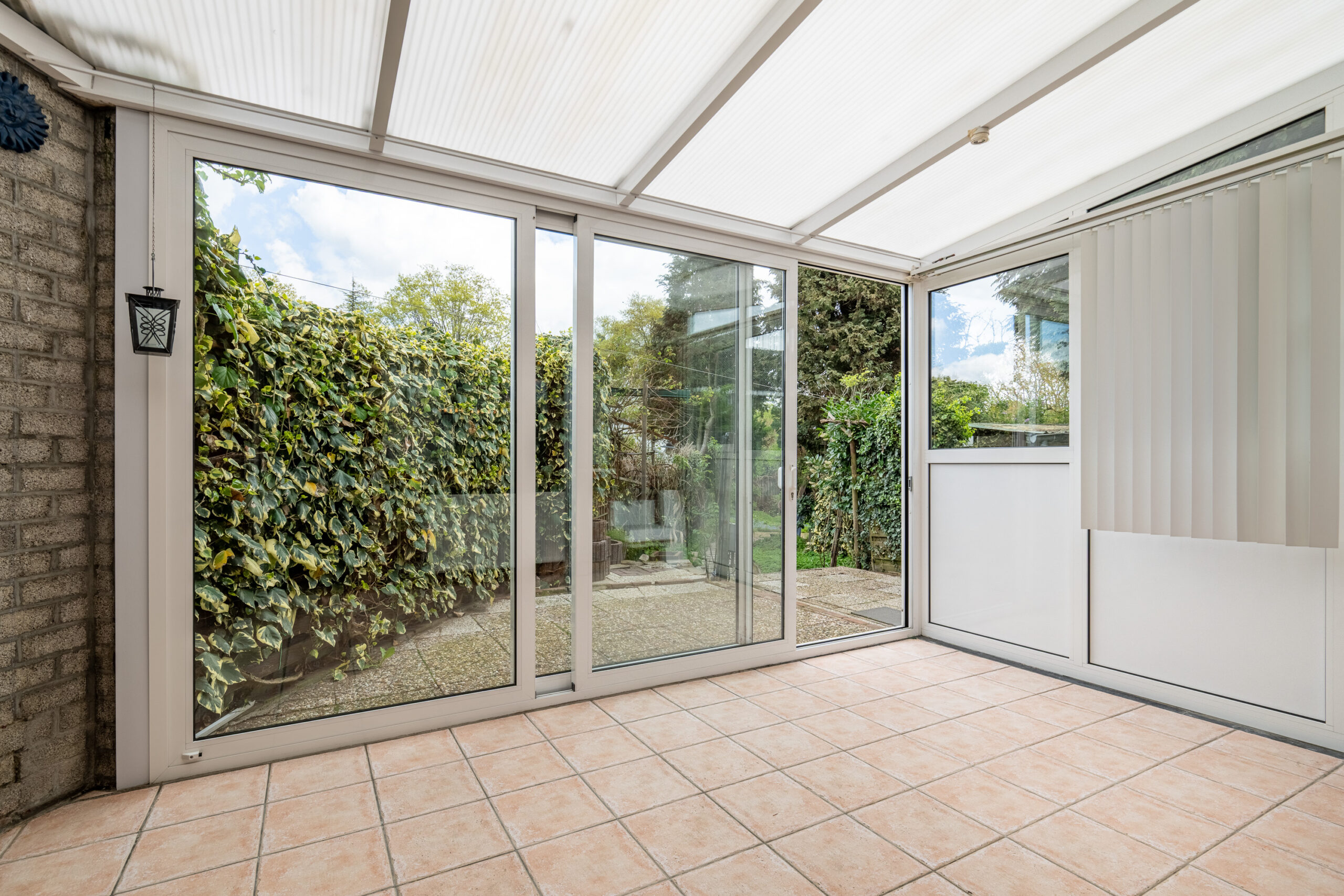 Middels deur toegang naar de serre. De serre biedt veel lichtinval en is voorzien van een verwarming waardoor men hier het gehele jaar kan zitten. Via een schuifpui is vervolgens het terras te bereiken.
