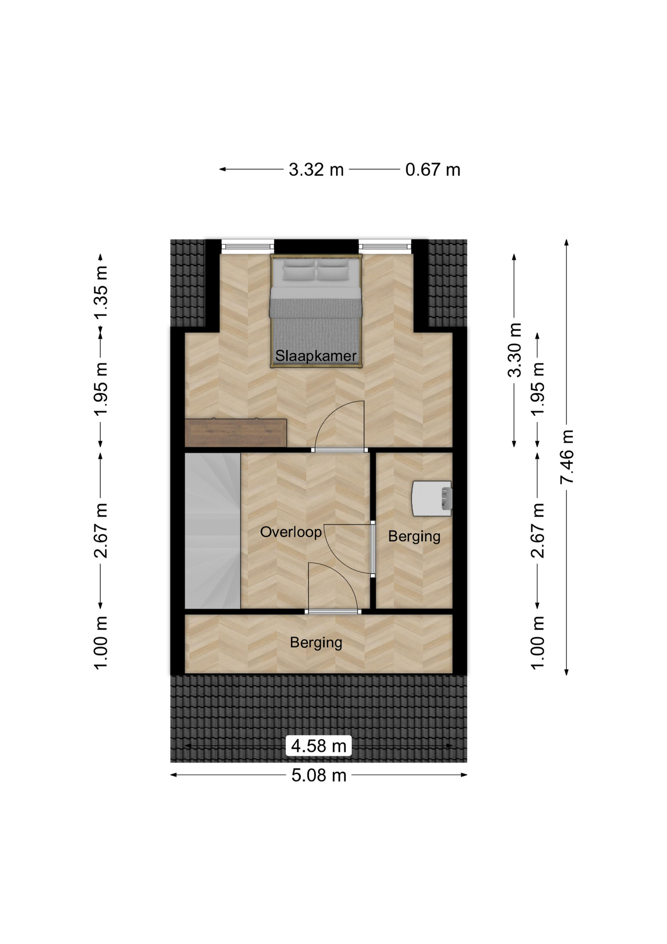 Tevens is er nog een bergruimte onder de schuinte van het dak.
